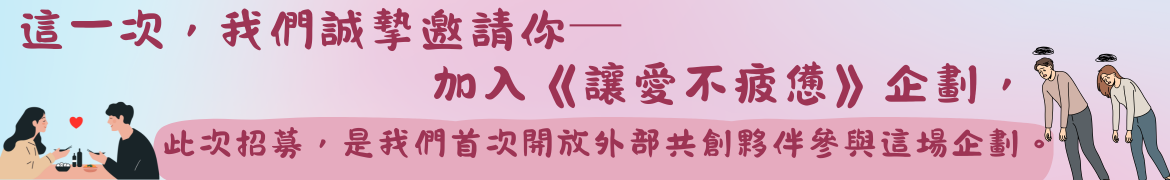 誠摯邀請你加入這場【讓愛不疲憊】的合作計畫!