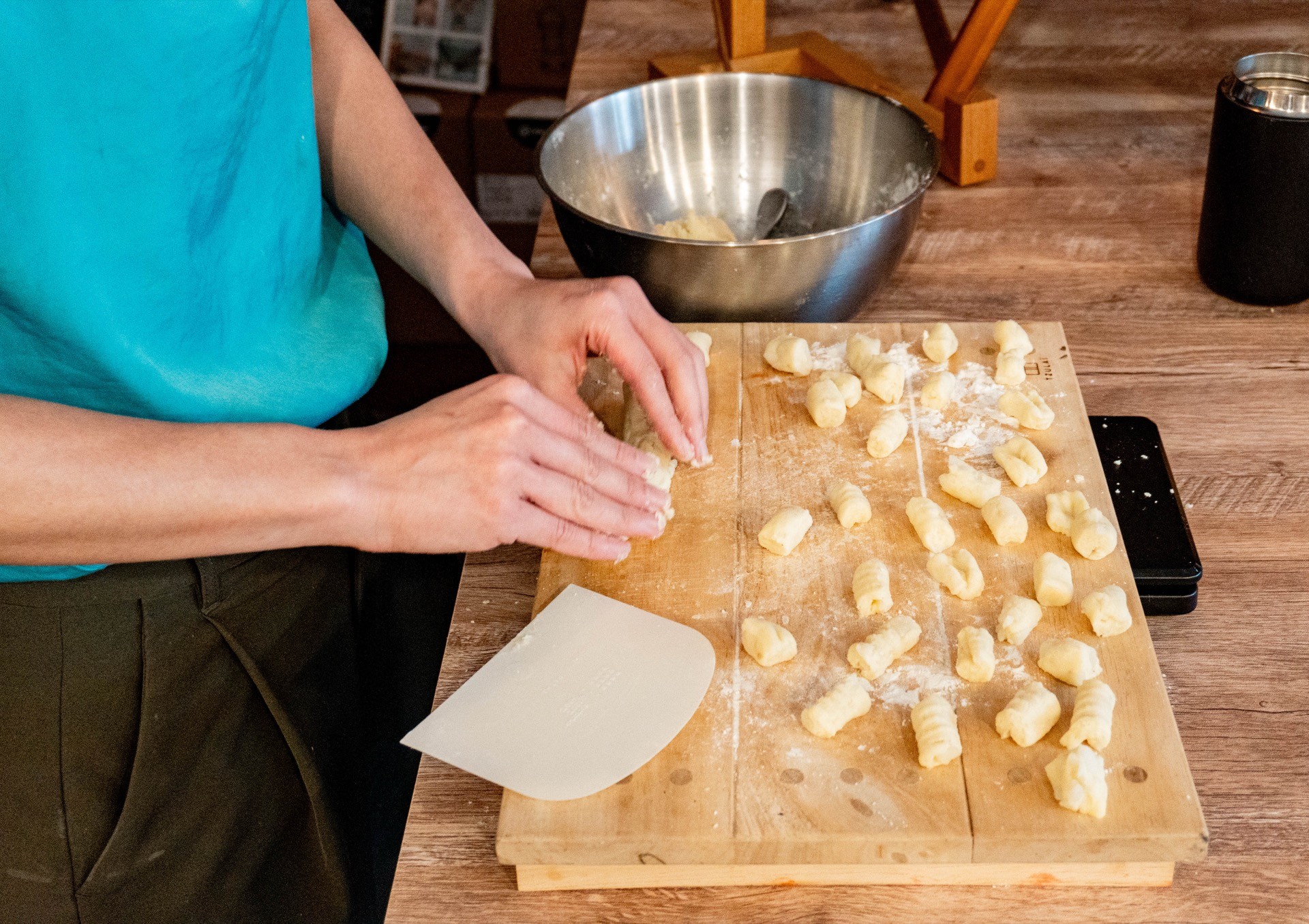 馬鈴薯的品種其實很多,活動中,我們從馬鈴薯開始,用手搓、用手壓,用小木板壓出形狀,現場會教你三種不同的 Gnocchi 造型。