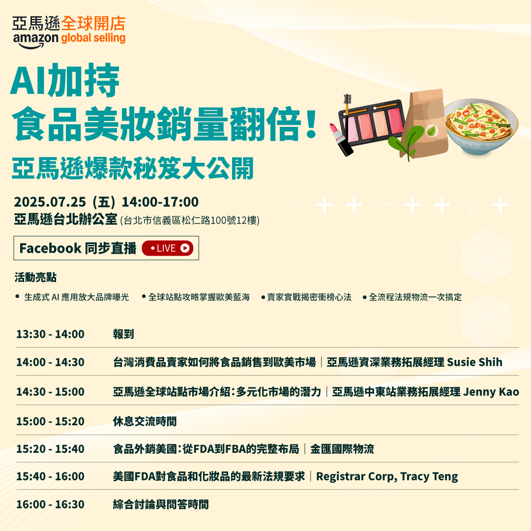 我們將為企業提供食品類別曝光度提升策略與銷售轉換率優化方案,為台灣食品、美妝品牌進軍亞馬遜全球舞台給出實戰指南,協助企業掌握成功關鍵、規避常見風險,搶佔跨境電商藍海,幫助台灣品牌在亞馬遜生態圈立足、避開失敗陷阱,成功出海!