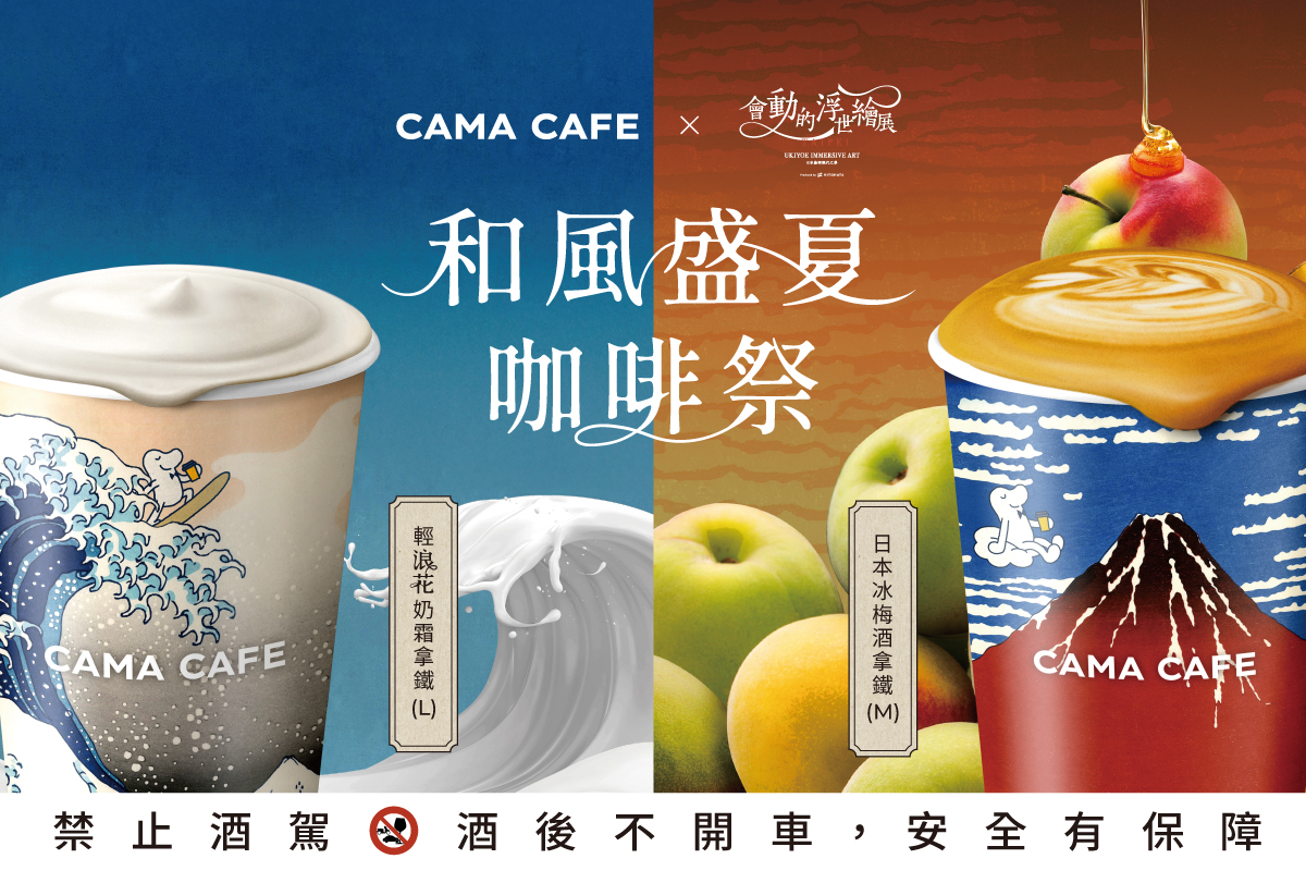 📣兩款聯名飲品於 6 月 18 日至 8 月 29 日 在全台 CAMA CAFE 門市限時販售,凡購買任兩杯聯名飲品,即贈《會動的浮世繪展》展覽聯名保冷提袋(數量有限,送完為止)。
