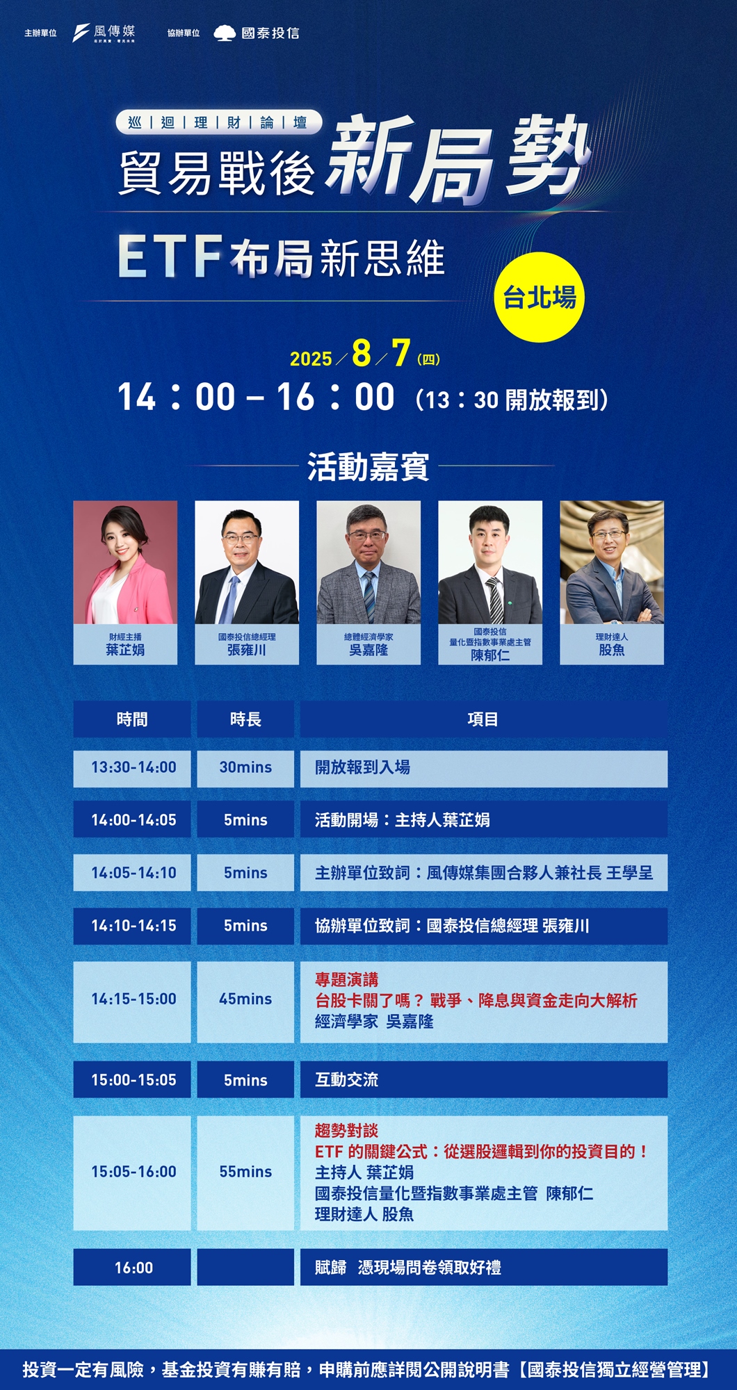 風傳媒攜手國泰投信推出此次理財說明會,邀請重量級專家現場剖析: