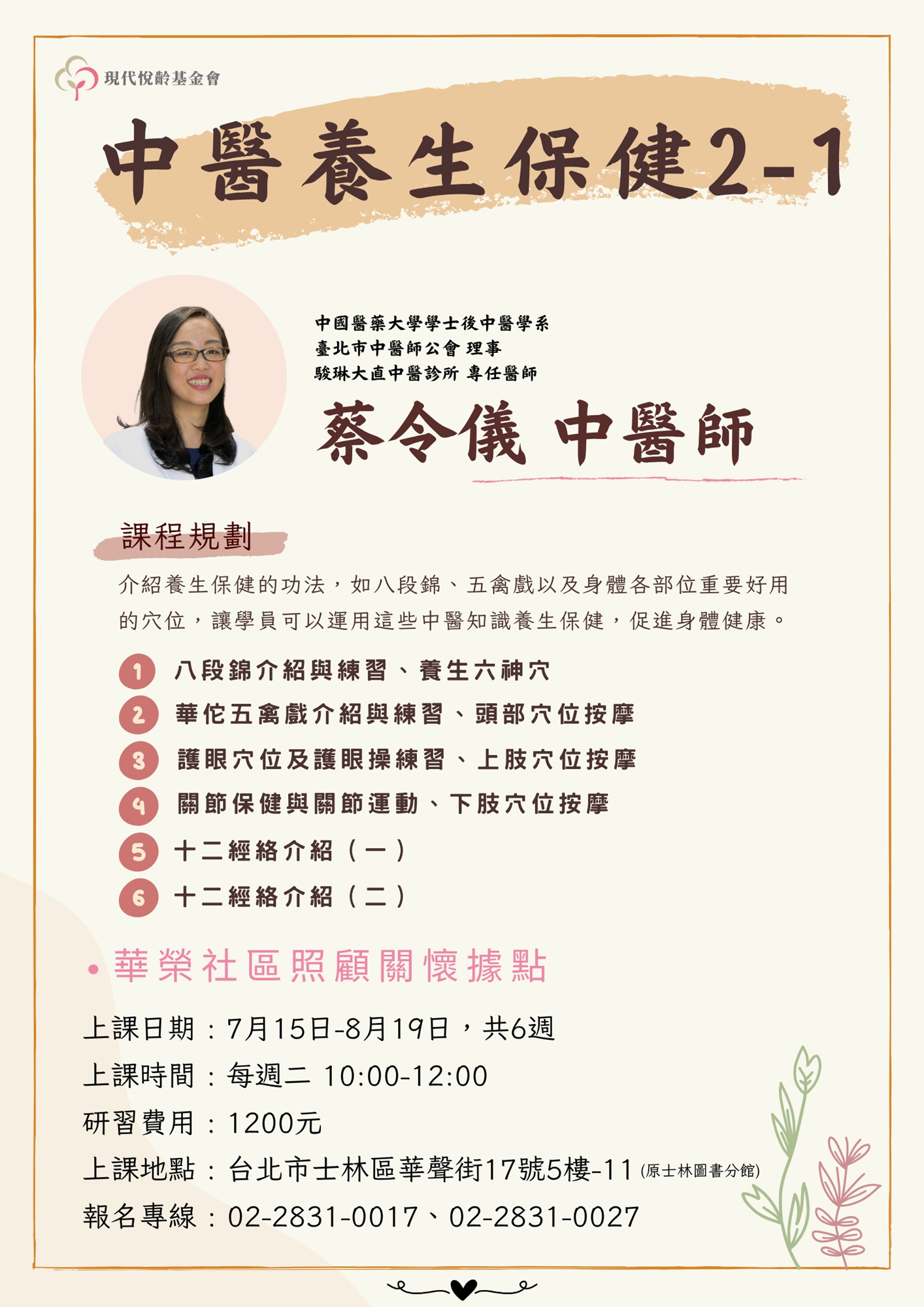 蔡醫師是我們在華榮據點新學期的老師!