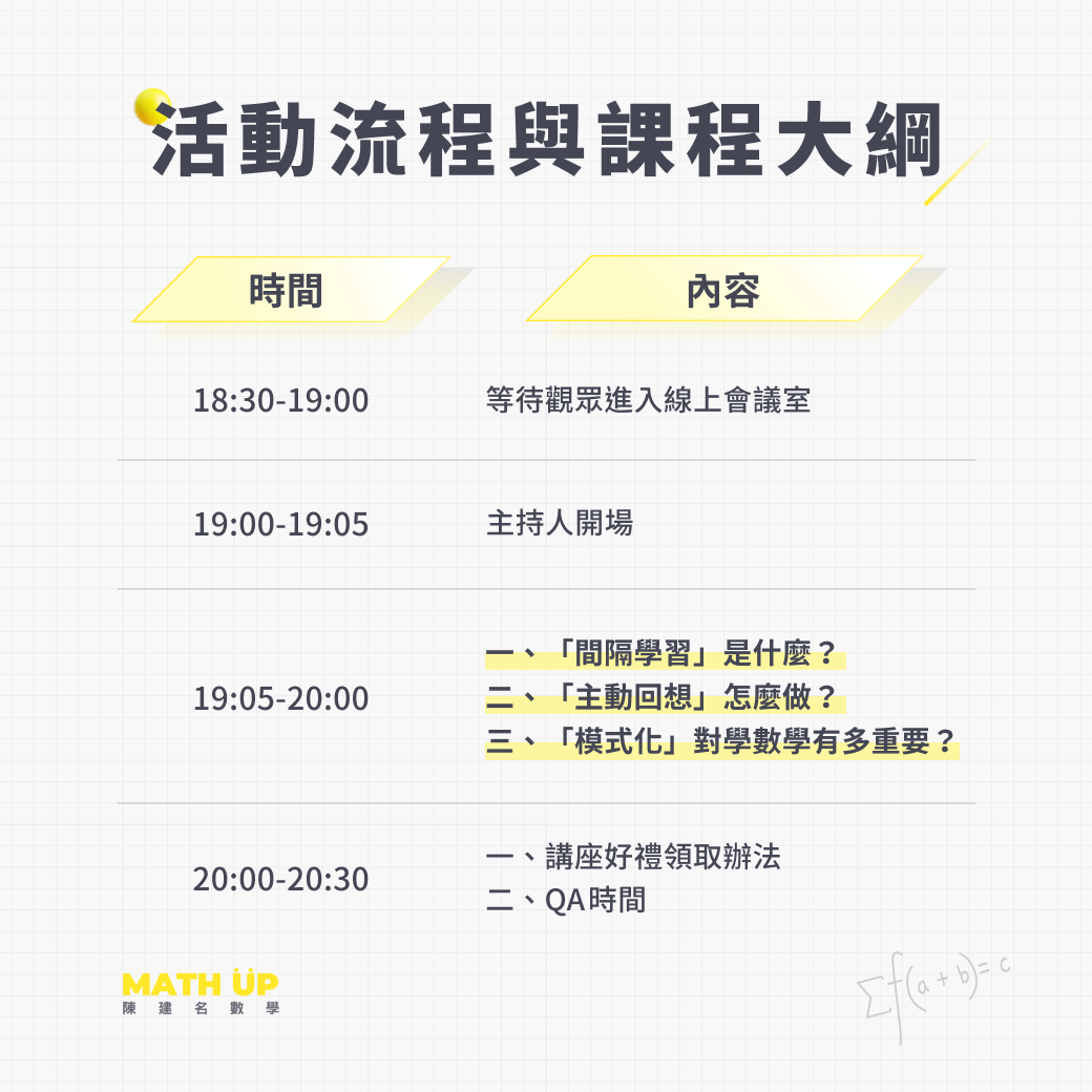 本次講座將由資深高中數學補教老師深入解析學好高中數學的關鍵策略,協助學生掌握有效學習方法,避免一入高中就被數學拉開差距。