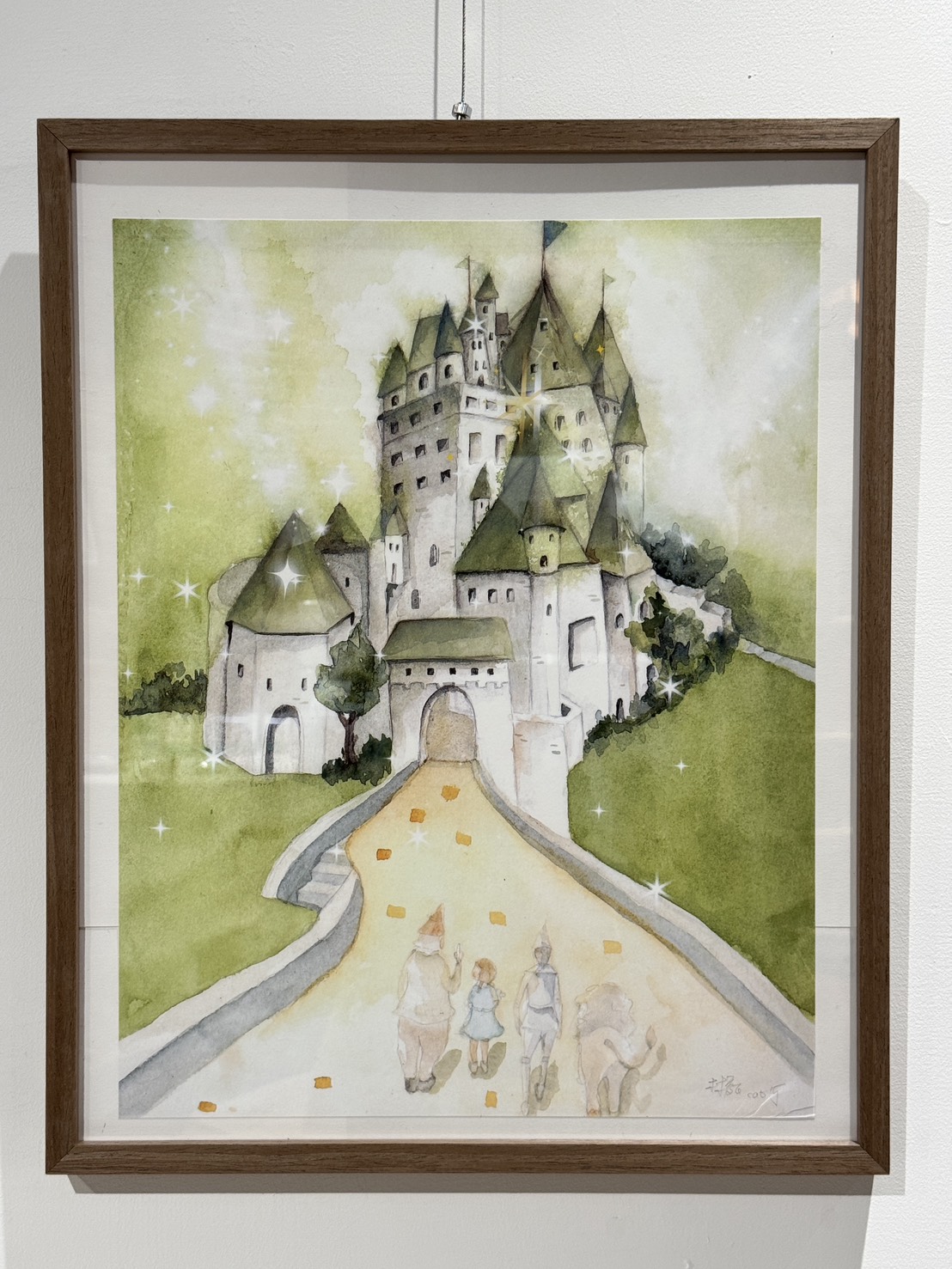 本次展覽的作品是林庭老師以經典故事《綠野仙蹤》為靈感,透過水彩創作,細膩的筆觸與柔和的色彩,營造奇幻般的視覺體驗。作品展現主角桃樂絲與夥伴們的奇幻旅程,融合童話世界般的風景,並將奧茲大王象徵意涵詮釋於畫作之中,為觀者帶來全新的藝術視角