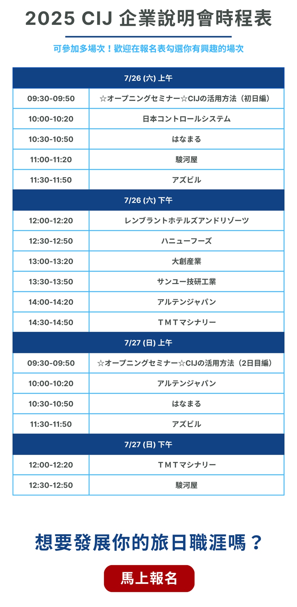 - ‼️ 若已於 Mynavi 國際派就職 網站完成投遞履歷,請勿重複報名本場活動。
