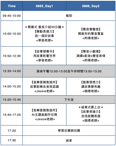 - 活動日期:8/5(二) - 8/6(三) 10:00-17:30,包含午休1.5小時