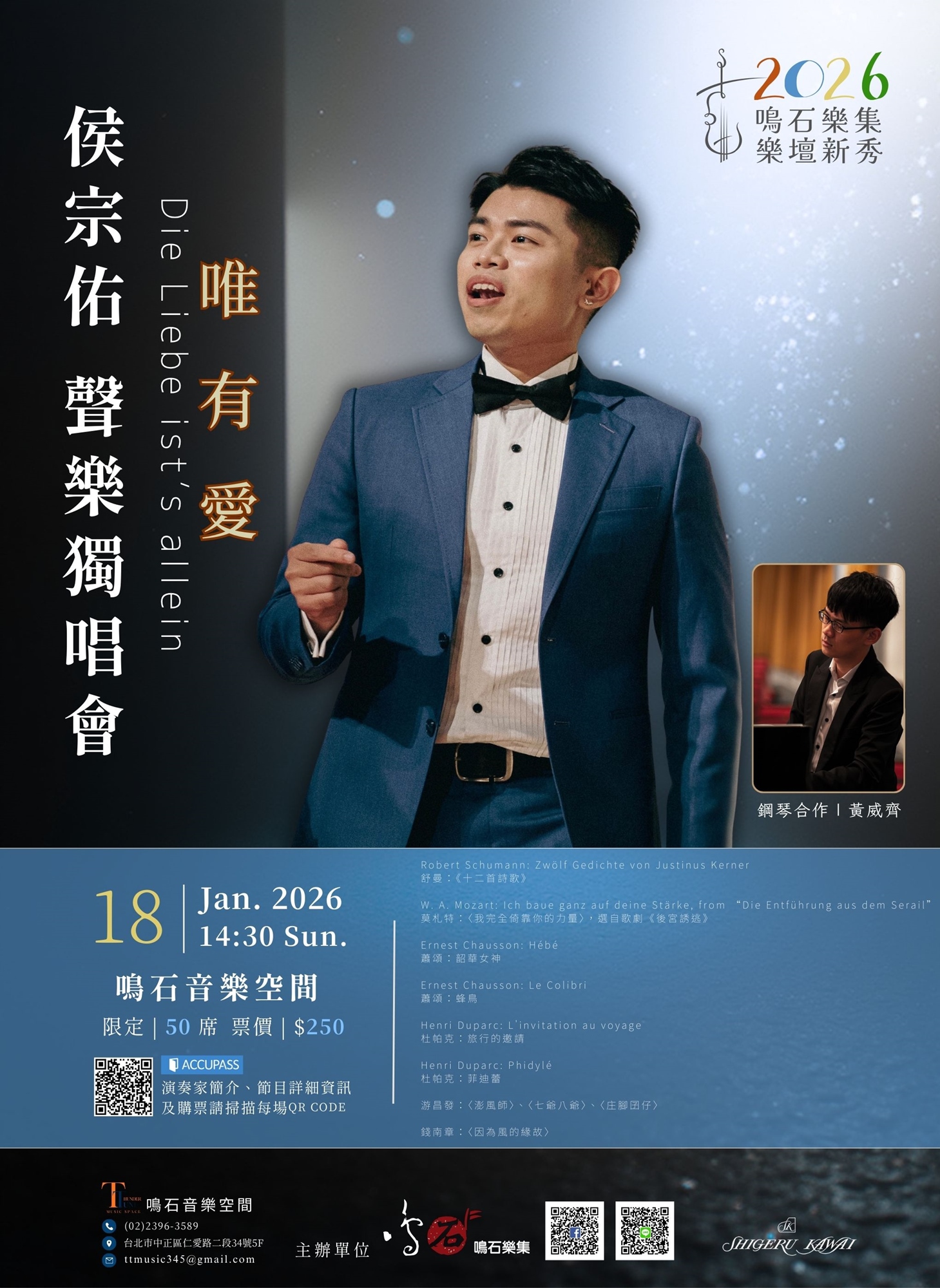 鳴石樂集樂壇新秀《唯有愛》侯宗佑聲樂獨唱會