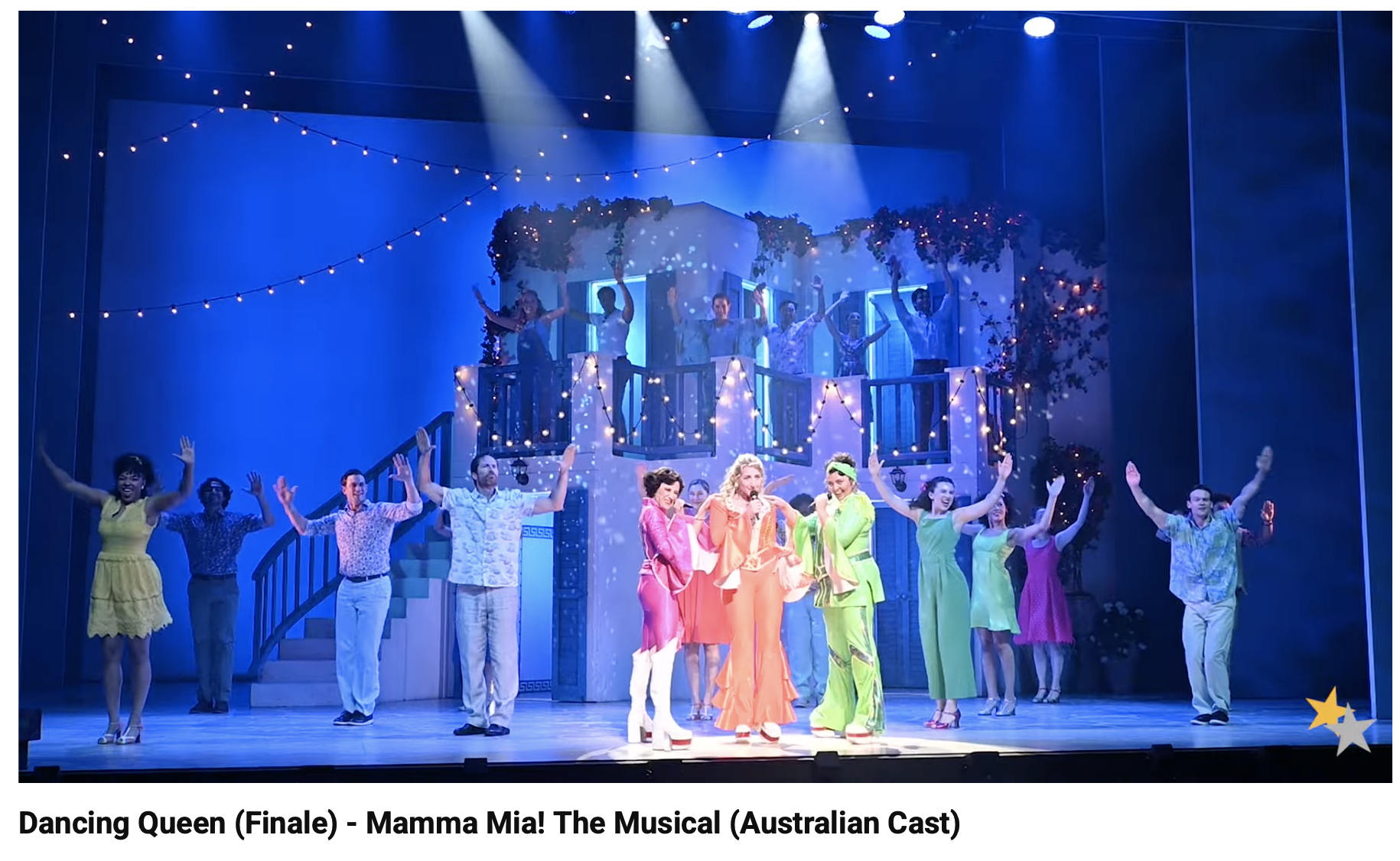 一部由 英國劇作家 Catherin Johnson 創作的百老匯音樂劇,音樂劇的名稱來自於ABBA樂團1975年年度排行榜冠軍的同名單曲。1999年由英國女導演Phyllida Lloyd 執導,劇中包含了ABBA樂隊多首成名曲目包括:《Super Trouper》、《Dancing Queen》、《歌聲讓我飛翔》、《勝者為王》以及《S.O.S.》。全球累計已超過2千萬人欣賞。"Mamma Mia"為義大利語,本意是「我的媽媽」,用於驚嘆,相當於漢語「我的媽呀!」,表示驚訝、悲傷、興奮等情感。