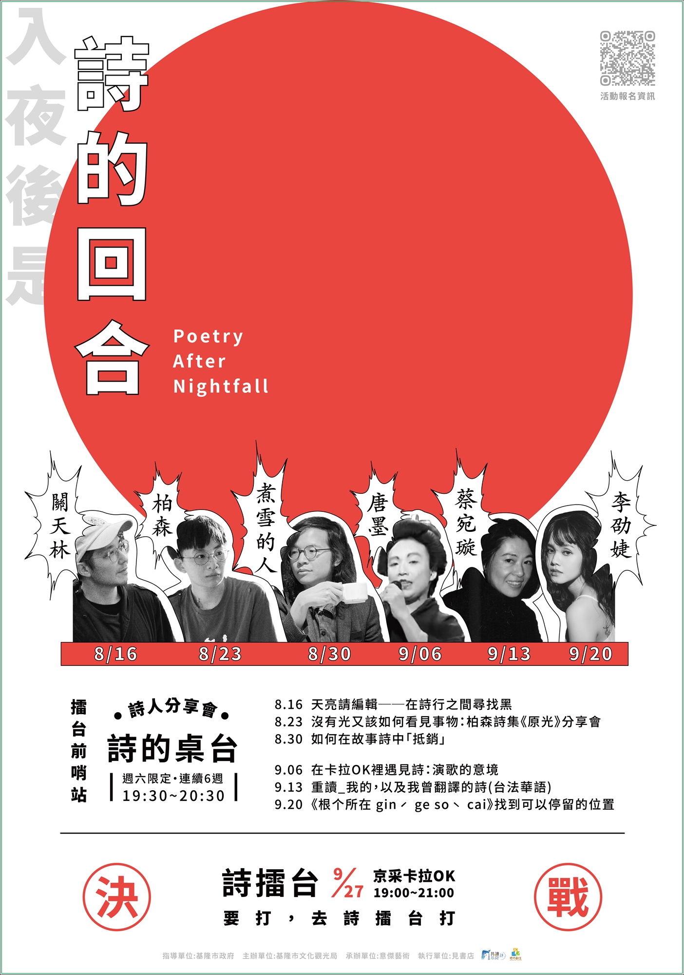參賽詩人:關天林、柏森、煮雪的人、唐墨、蔡宛璇、李劭婕 + 兩名民間踢館者 (?)