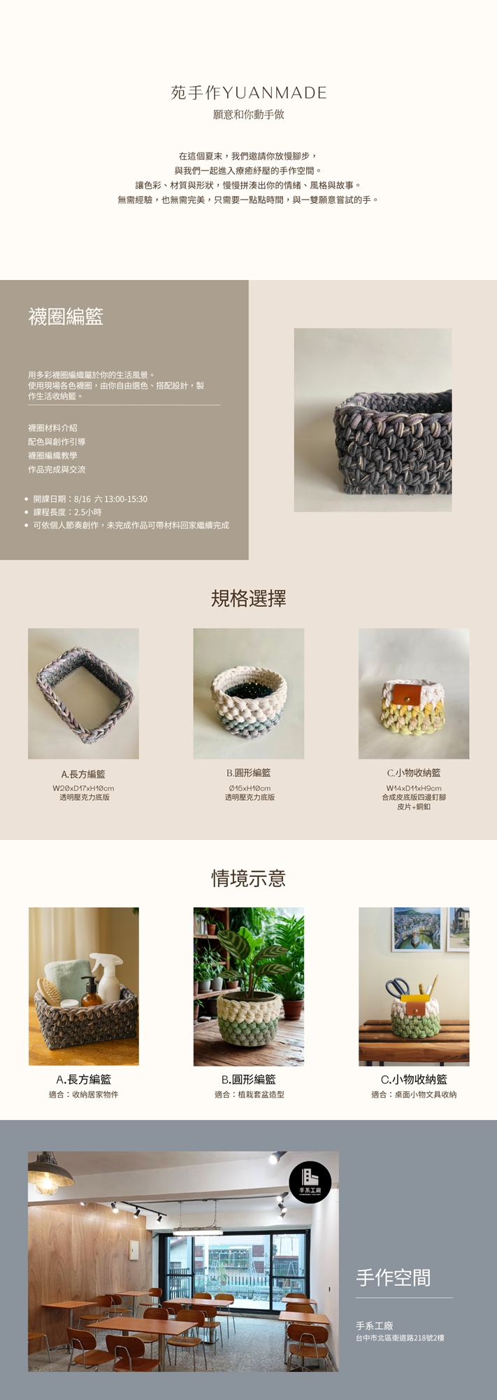 1.選擇編織籃課程的同學,請務必勾選『尺寸規格』以利備料。