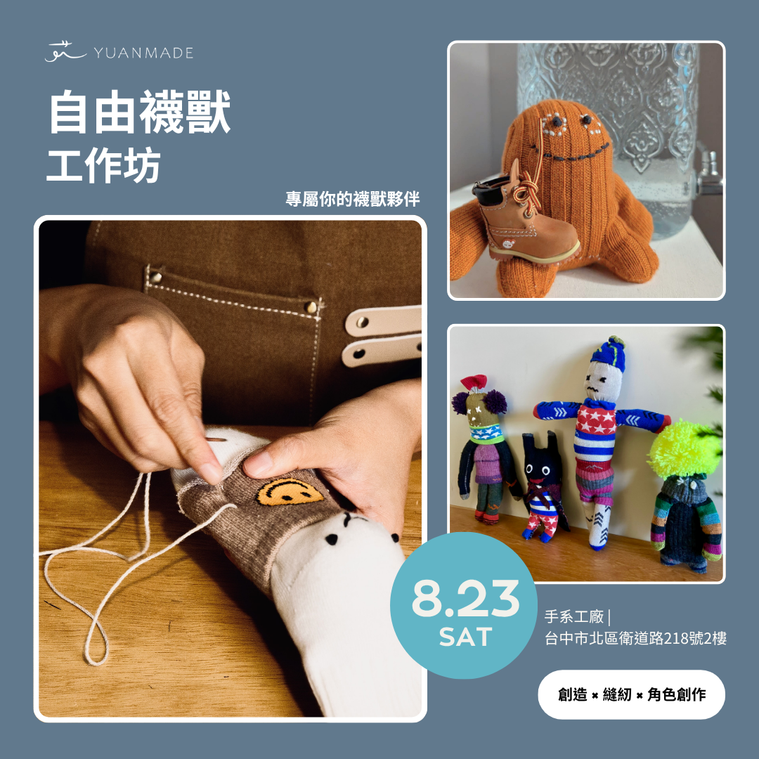 A:襪圈編籃完成 1 只小籃(可帶回續作);自由襪獸課程現場完成 1 隻,並附贈 1 份材料包回家創作。