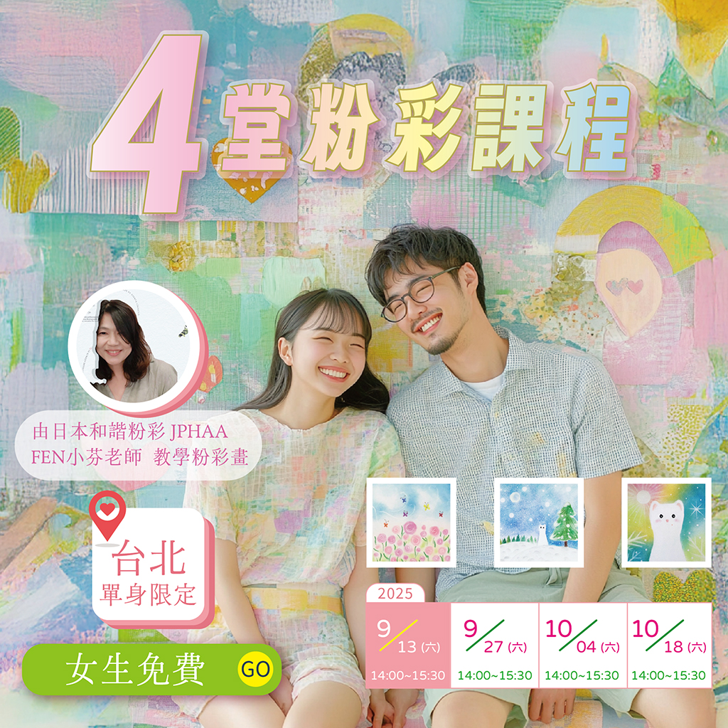 ✨本梯限額招募【26~45 歲單身女生】,符合條件可免費參加 4 堂粉彩畫課!