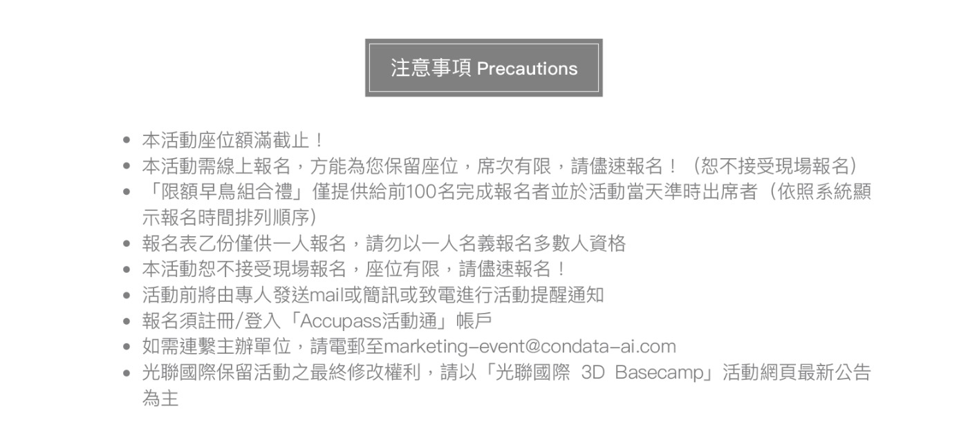 報名完成後出示 ACCUPASS App 中的票券即可快速入場。