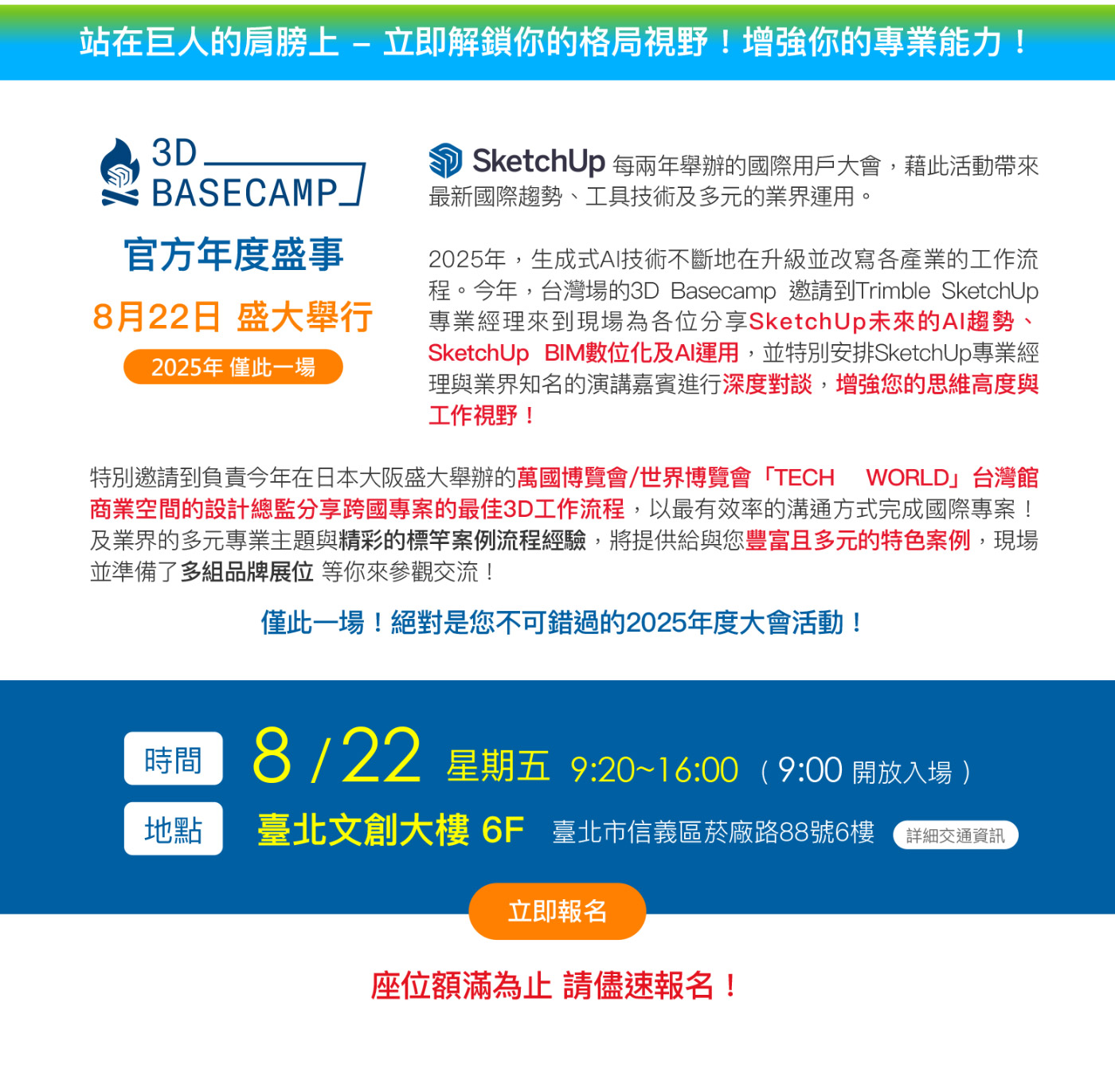 特別邀請您免費參與【3D BASECAMP — AI時代 3D設計大未來】SketchUp 官方國際論壇