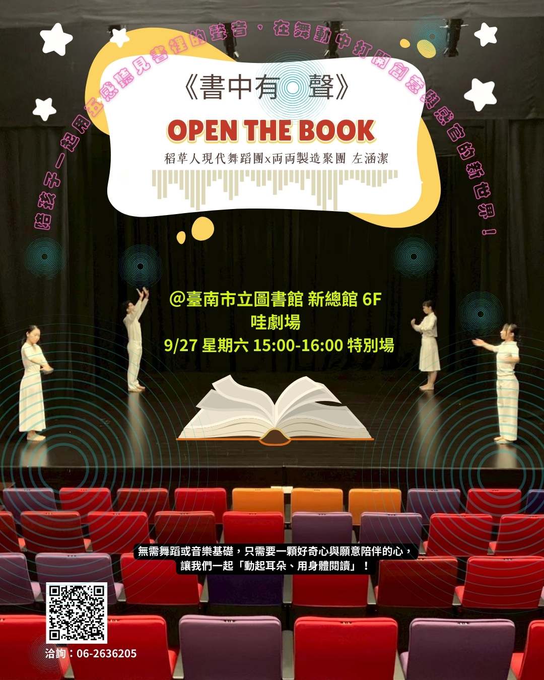 2025 年,我們將以 《OPEN the BOOK》閱讀 × 身體創作工作坊暨展演,探索「閱讀」與「身體創作」的全新對話,讓當代舞蹈與圖書館的文化資源相互激盪,結合 文學、舞蹈與聲音創作,發展出豐富多元的藝術內容。
