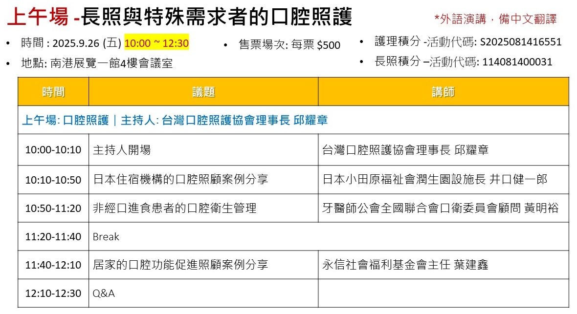 積分資訊 │ 活動名稱:亞洲進食照顧論壇-口腔照護