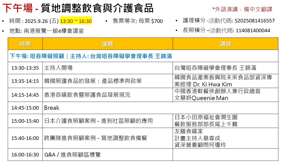 活動名稱 │ 第二屆亞洲進食照顧論壇 (Asia Care Food Forum)