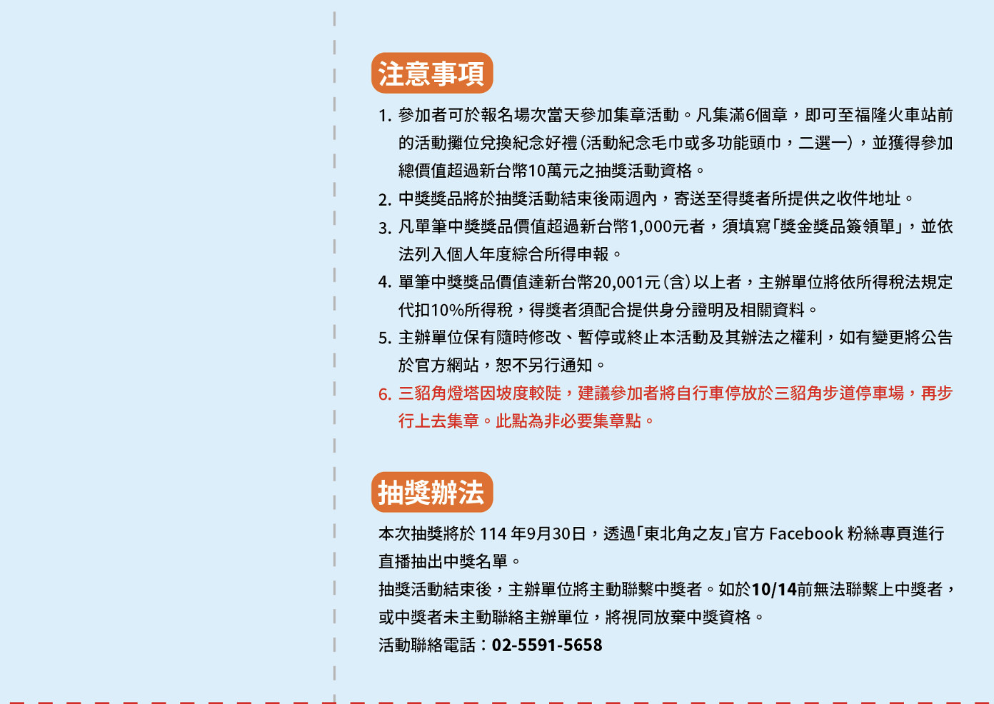 ■抽獎辦法:114年09月30日(二)於東北角之友官方臉書帳號直播抽出獎項。