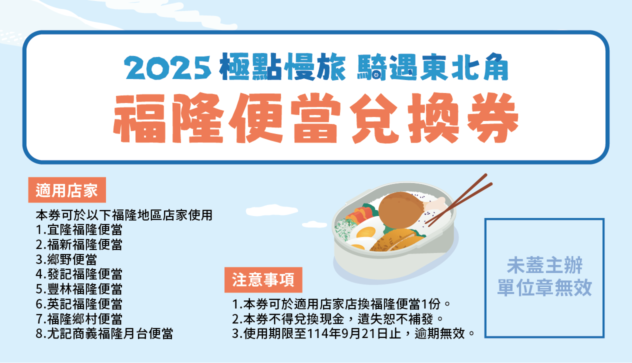 ■使用方式:可於票券上適用店家兌換福隆便當一份