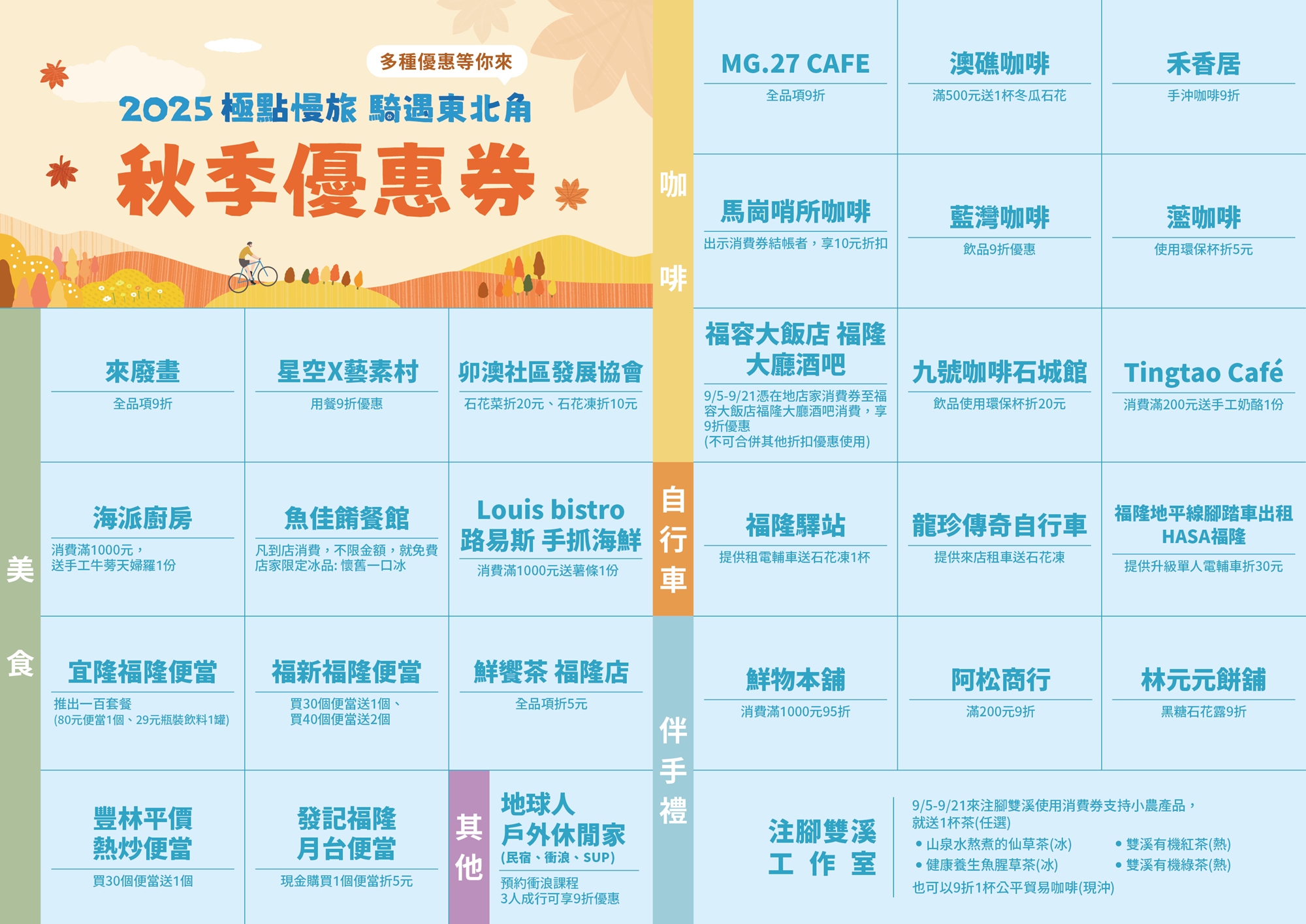■使用方式:可於東北角秋季優惠券合作店家做使用