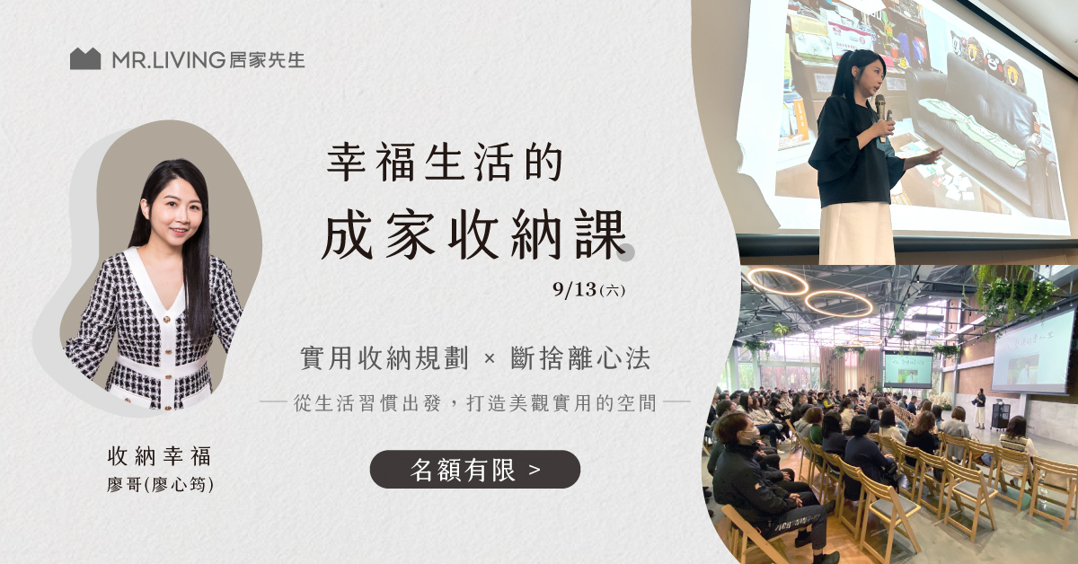 這次,我們邀請收納幸福廖哥分享兼具實用與美感的收納整理心法,讓生活空間更井然有序、舒適自在,一起打造不將就的理想生活。