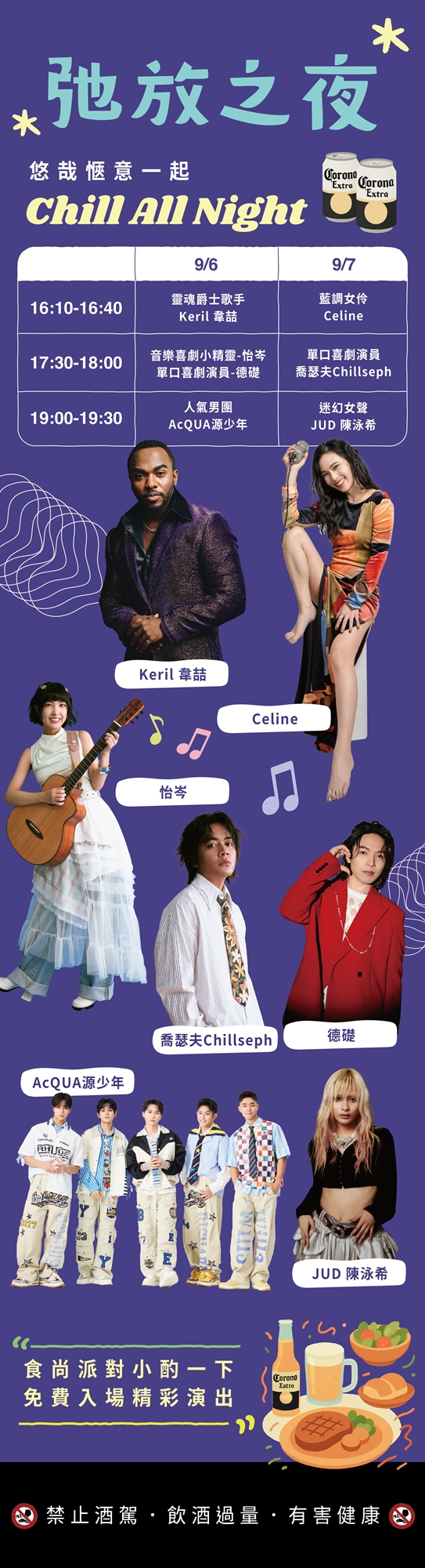 本活動為自由入場,僅單口喜劇須購票方能在草皮區坐空氣沙發觀賞