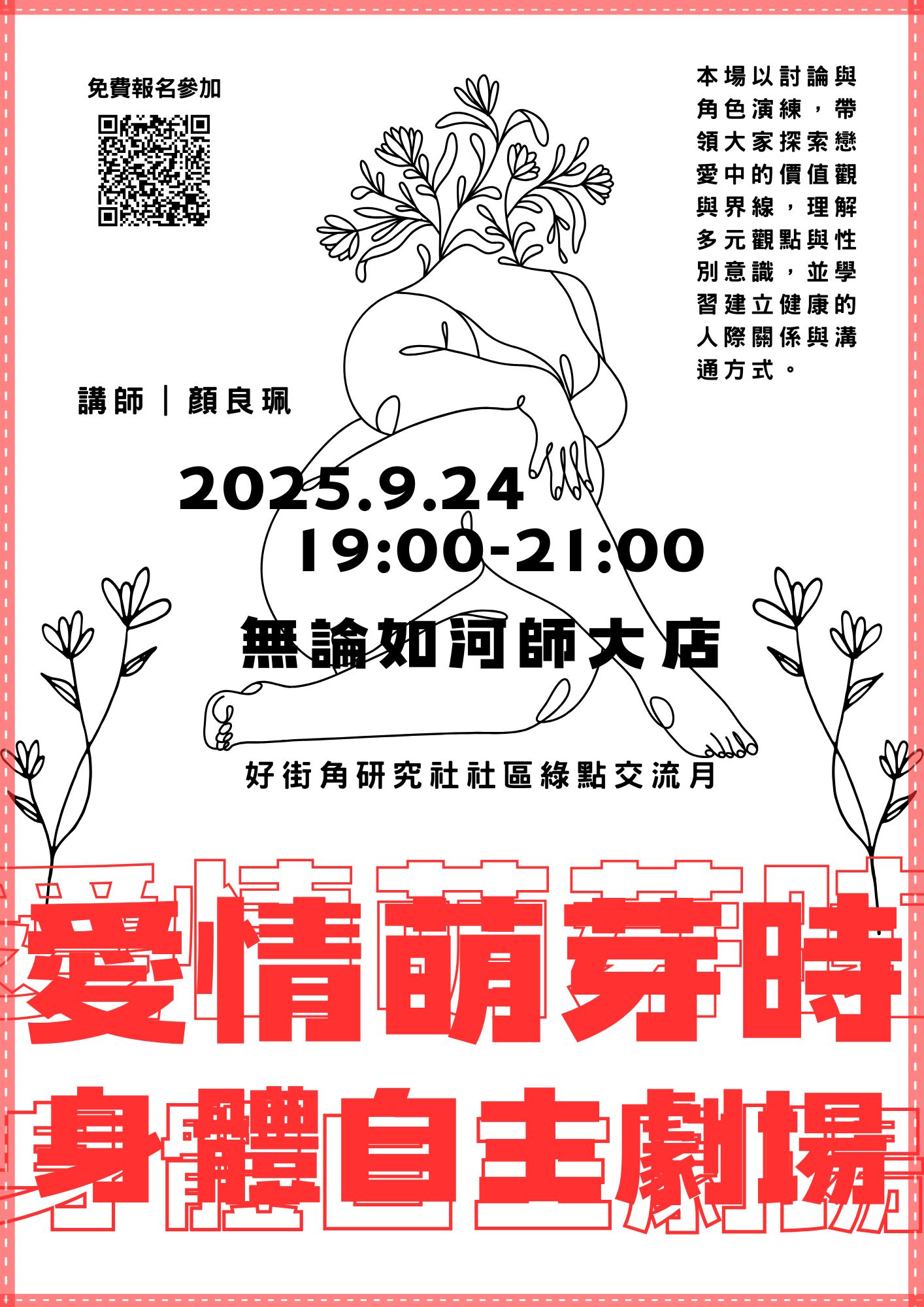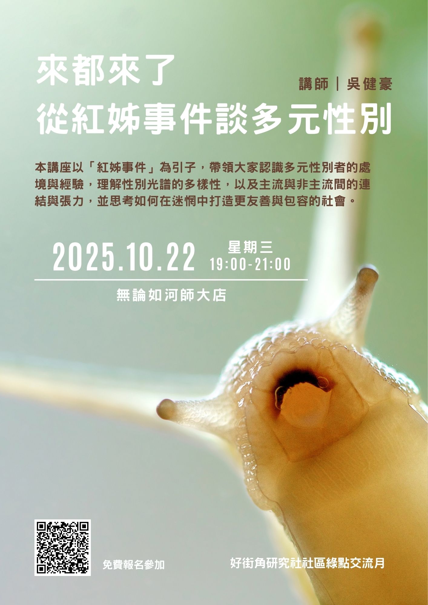 這次活動我們邀請了心理師、教授、社工、劇場人,帶來一系列輕鬆又實用的分享,讓大家一起在熟悉的社區空間中,認識性別、聊聊感受,也歡迎來交朋友!