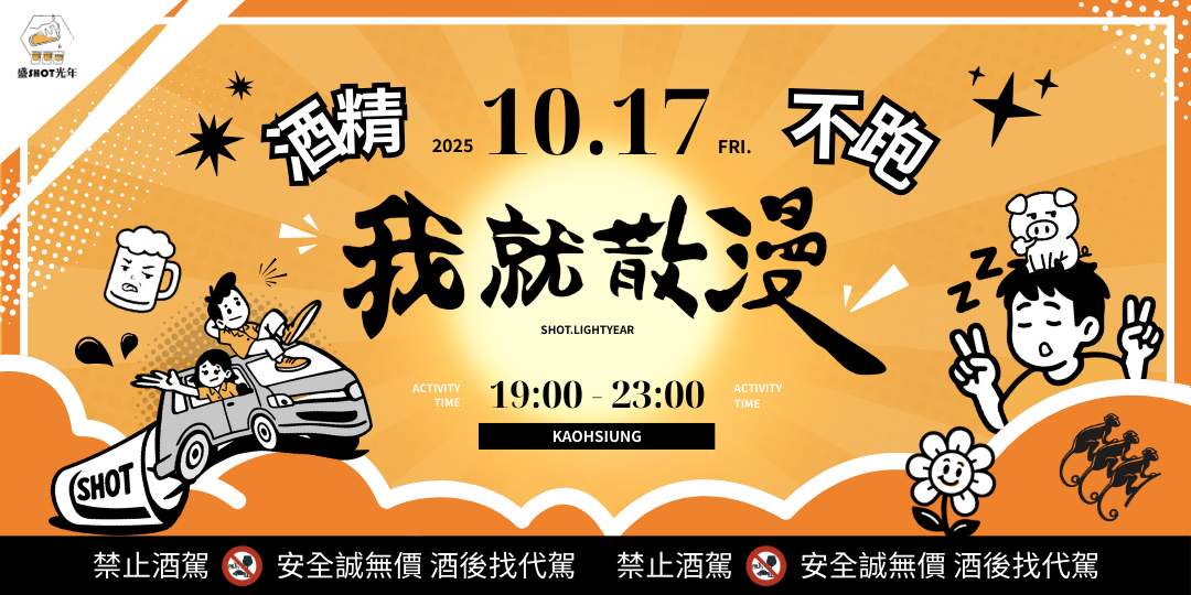 (在此聲明,共乘SHOT車過程中如有任何情愫產生,皆屬個人行為,主辦單位皆不負責。)酒精不跑VIP限定!主委再加碼送 1 人 1 件 散漫老公宮 主委背心!