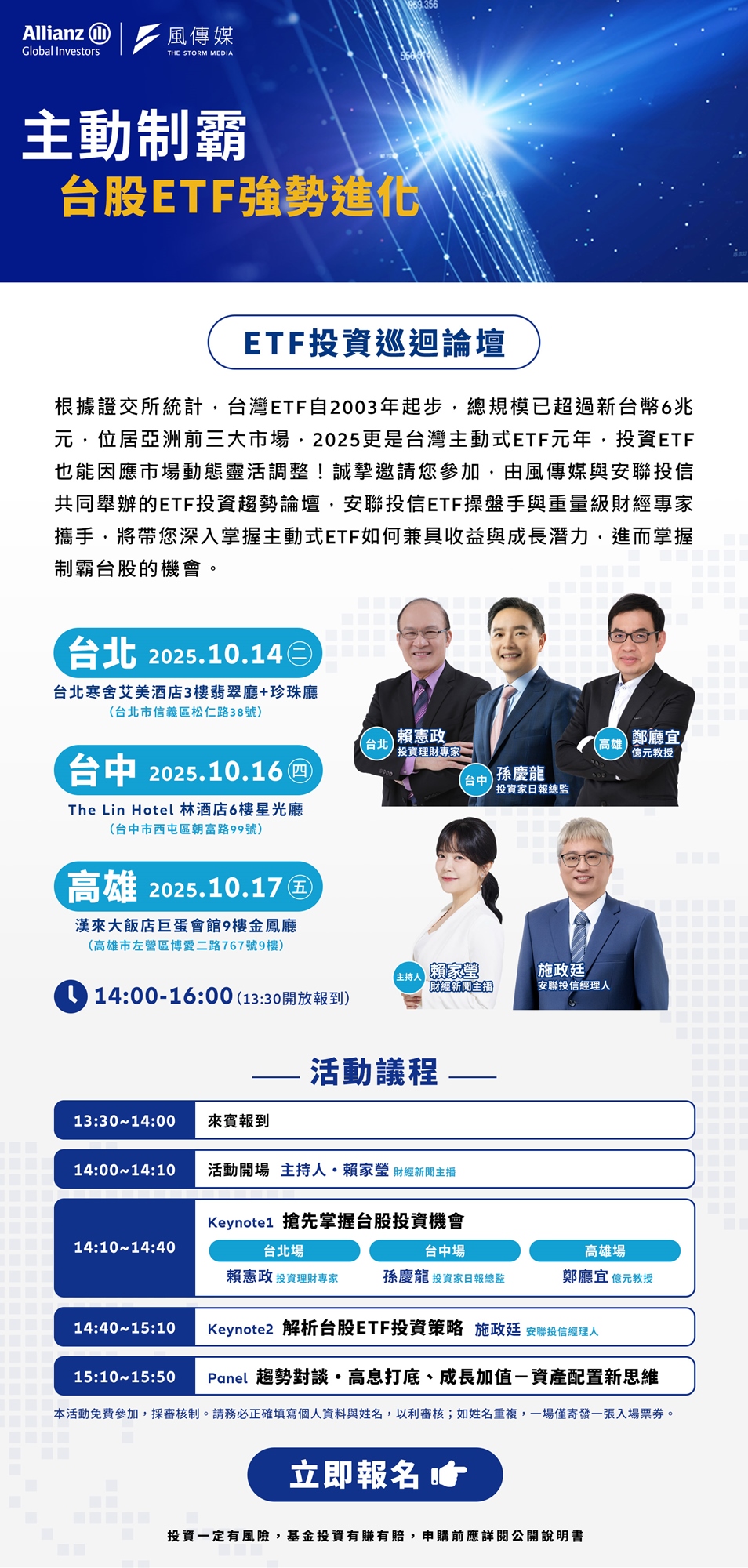 【主動制霸!台股ETF強勢進化】投資趨勢論壇-台北、台中、高雄