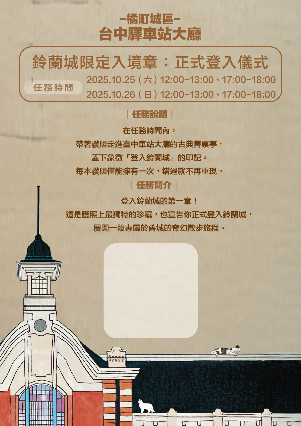 帶著護照到台中車站大廳售票亭,蓋下象徵「登入鈴蘭城」的入境章,正式展開舊城冒險!