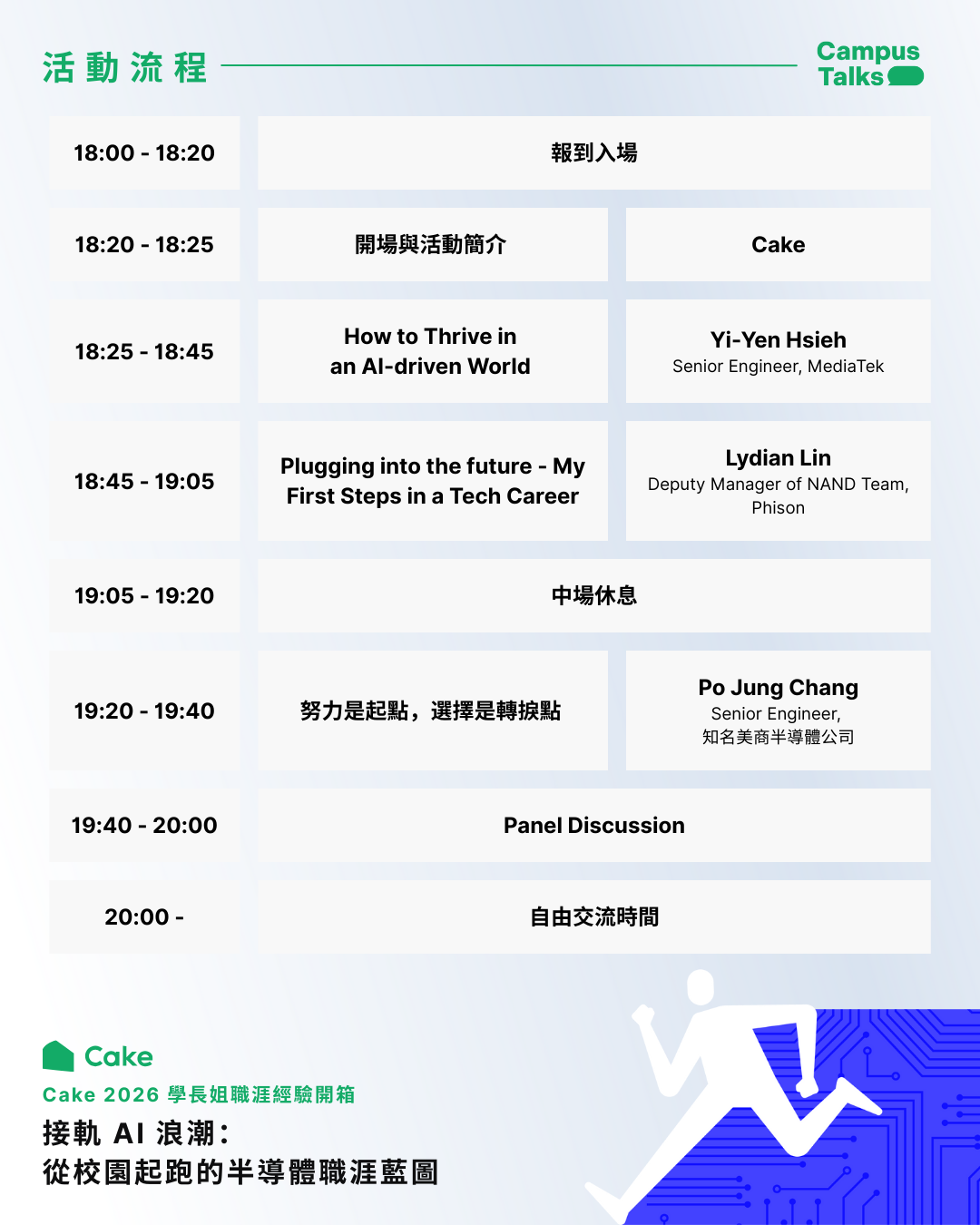 這場 Campus Talk 將帶你深入探索學長姐成為頂尖半導體工程師的真實職涯經驗,