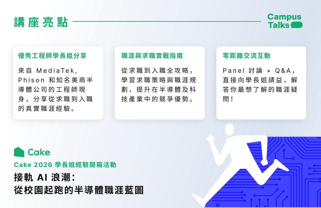 不要錯過 Cake 為年輕人才量身打造的 2026 學長姐職涯經驗開箱 Campus Talk!