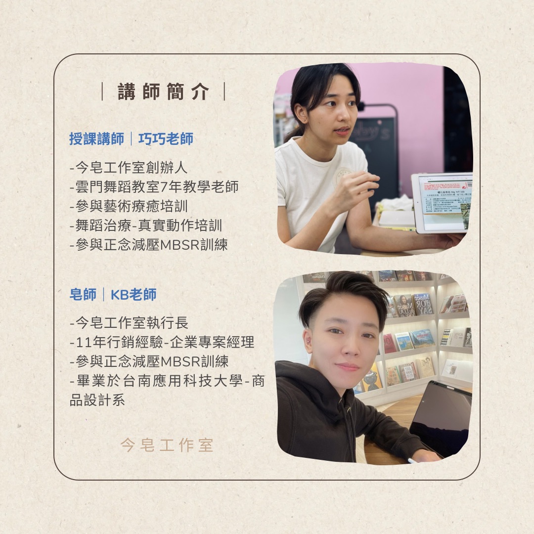 4.活動相關照片、影片將使用於今皂工作室粉專、IG、網站作為宣傳推廣使用,若有問題請私訊我們。