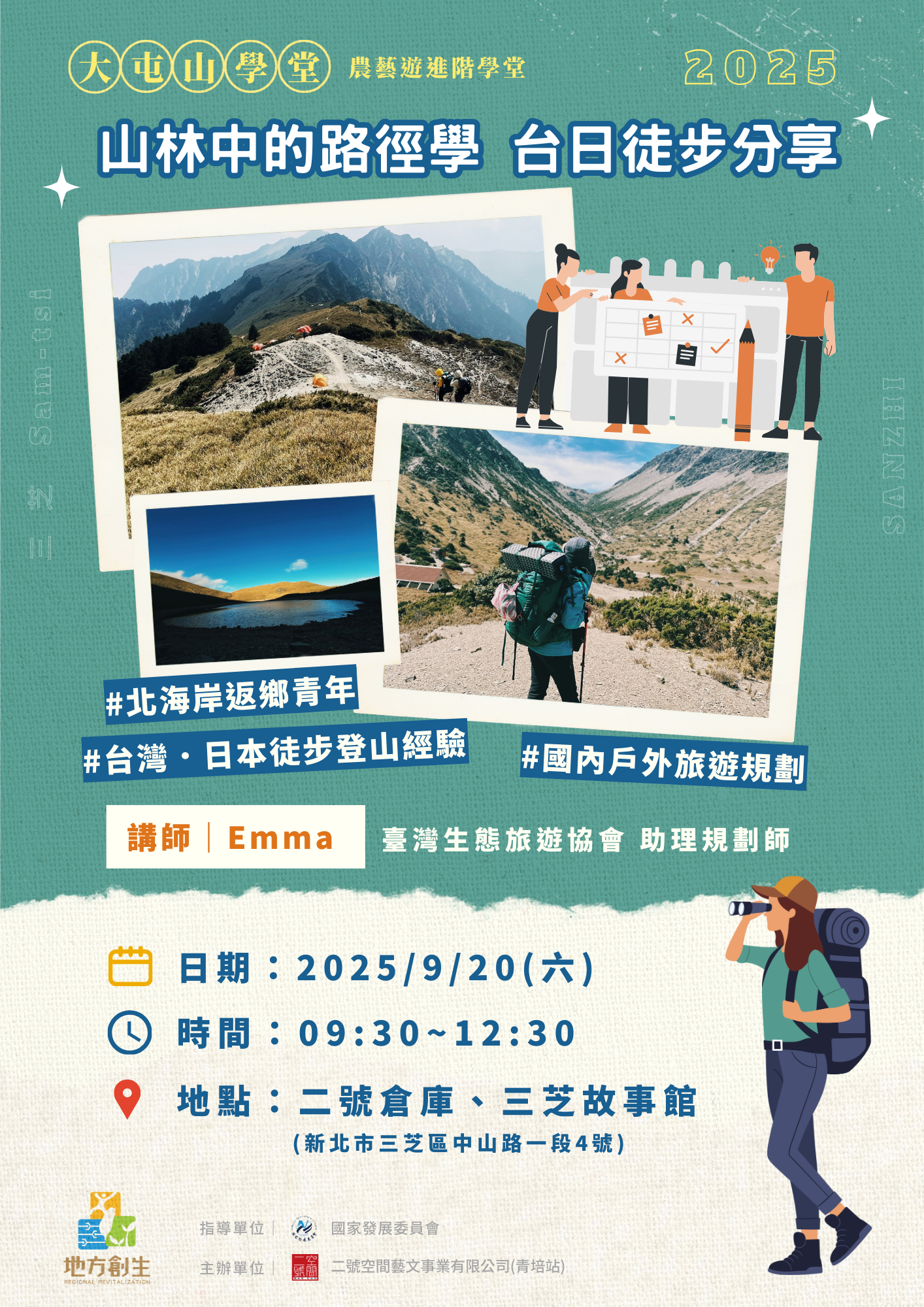 ✔ 對徒步旅行、登山行程設計、自然導覽有興趣的朋友