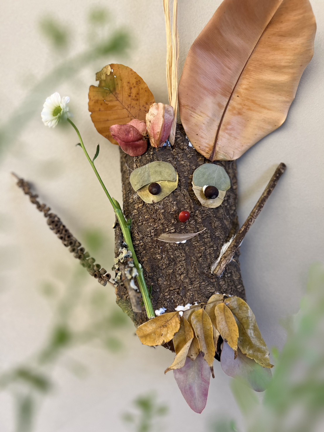 創作作品:觀察葉材與果實的形貌,運用天然樹皮為基底,創作出屬於自己的田鼠阿佛乾燥植物掛飾