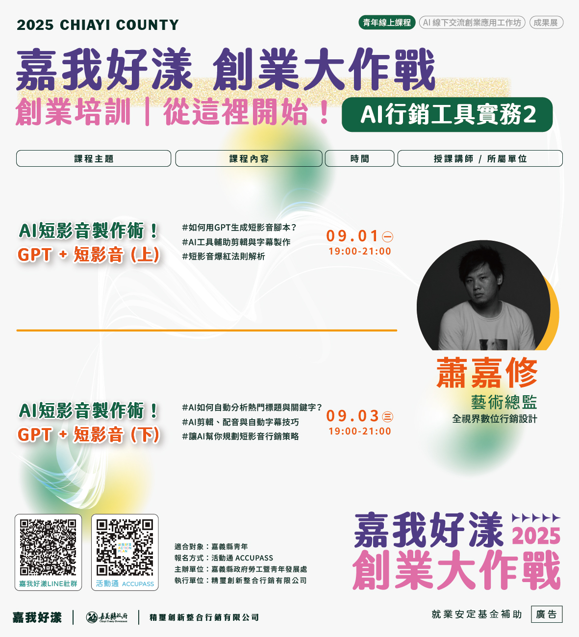 9/3(三)19:00-21:00 AI短影音製作術!GPT + 短影音 (下)