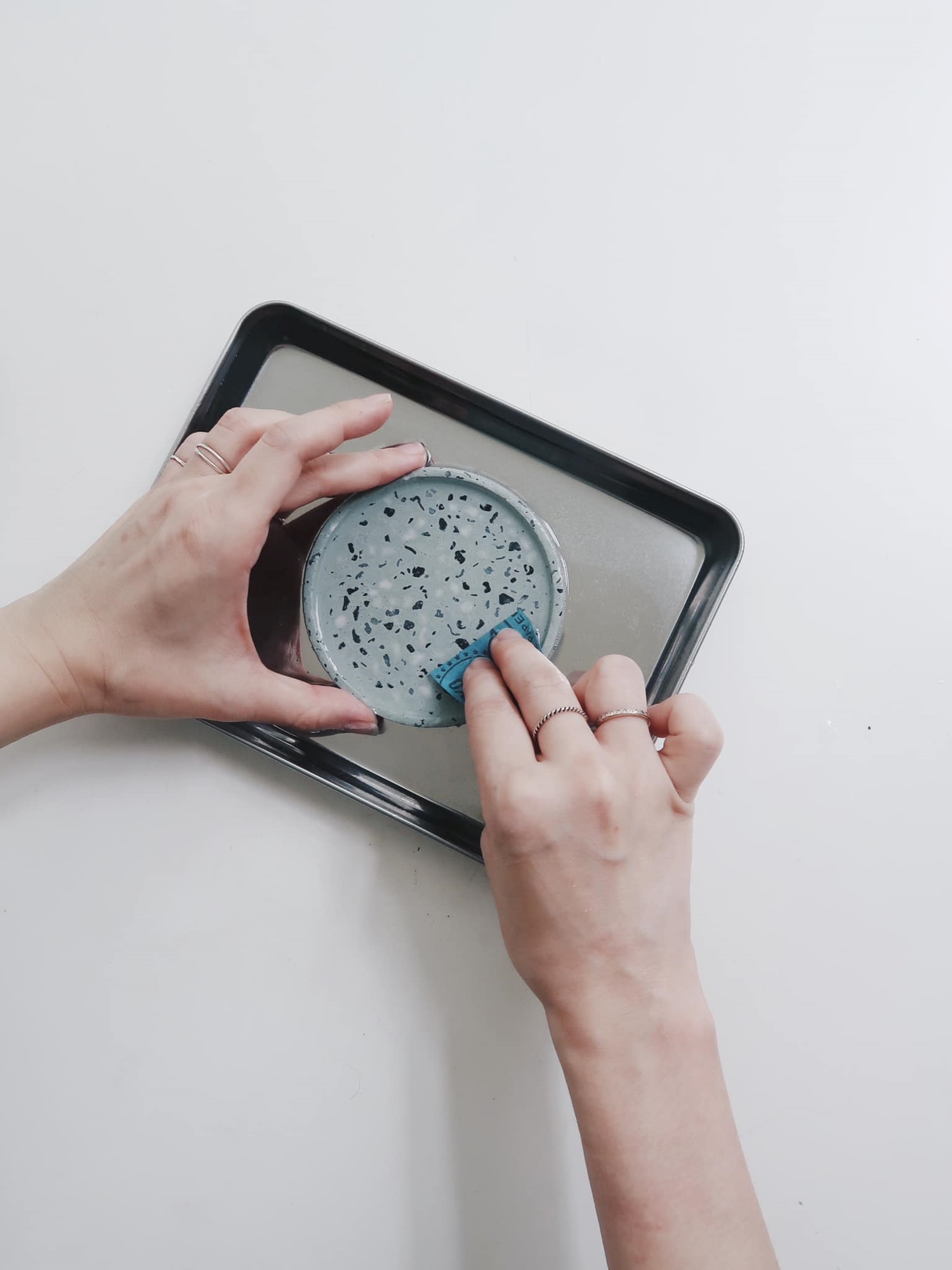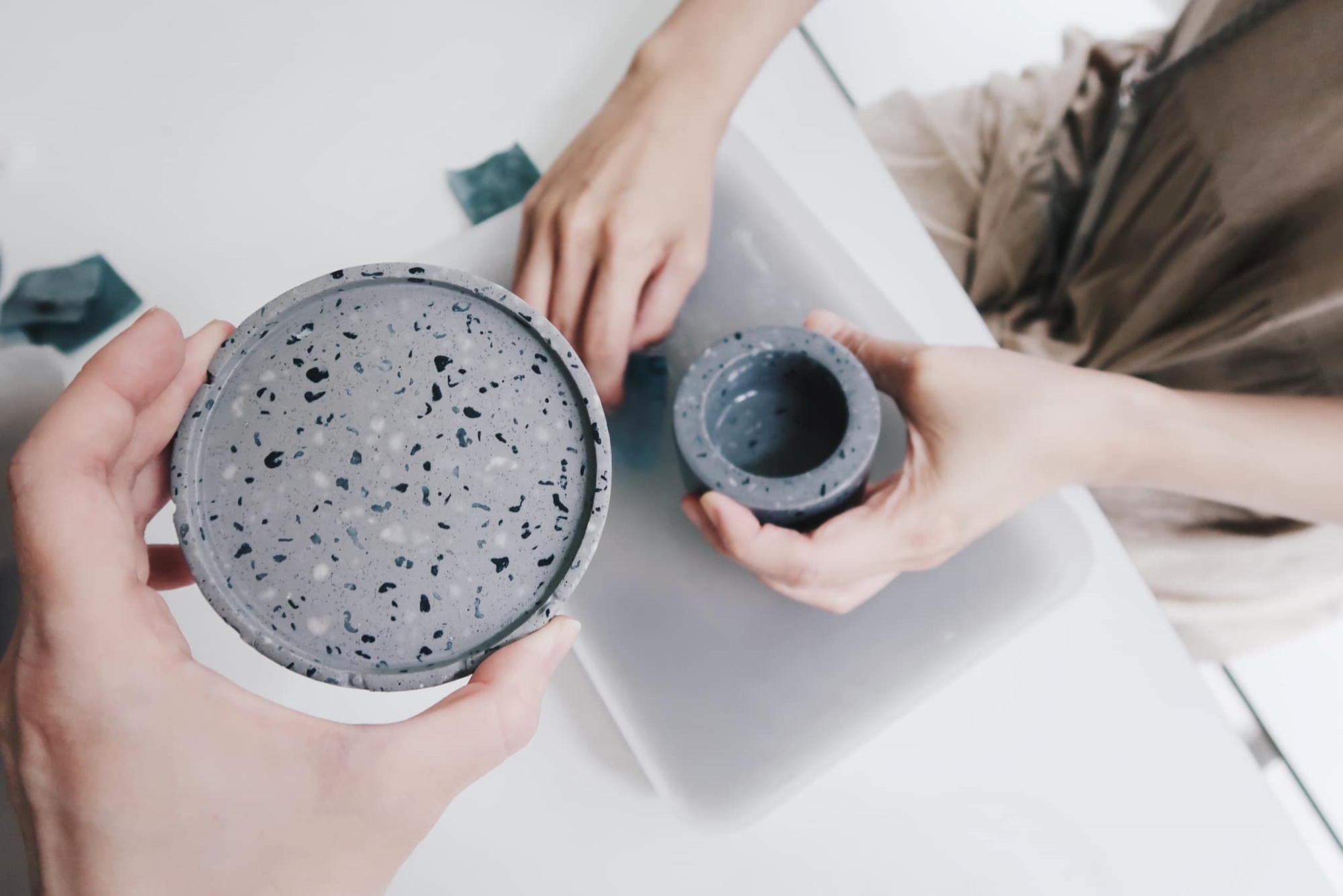這次 灰調 MONOCHROME 將傳統磨石工藝進行色彩創作,透過體驗水泥與天然石子攪拌的過程,製作出專屬莫蘭迪色調的小圓杯墊。杯墊具有吸水效果,可作為擴香盤使用,或者收納小飾品,讓摩登可愛的磨石子家飾融入生活中。
