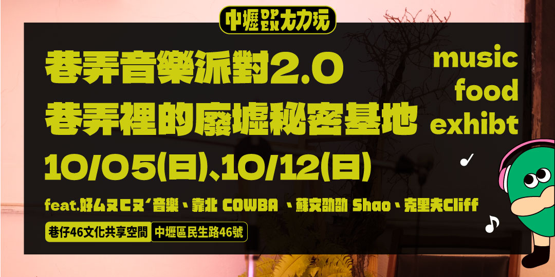 中壢OPEN大力玩【巷弄音樂派對2.0】巷弄裡的廢墟秘密基地|音樂、美食、展覽