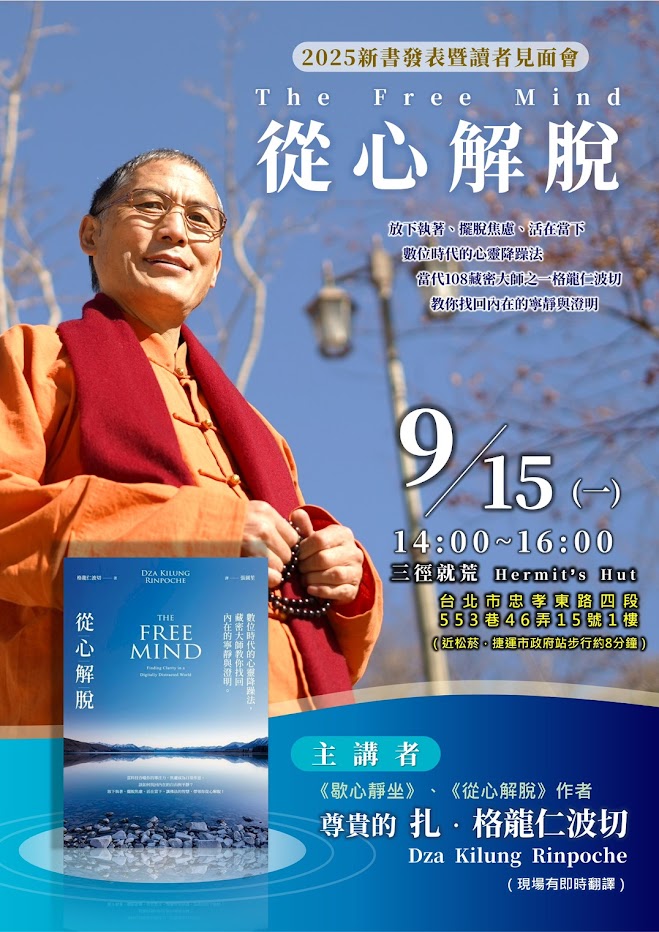 當日現場格龍仁波切將以英文講說答問,藏傳佛法資深譯者楊書婷口譯,開放25位讀者參加。