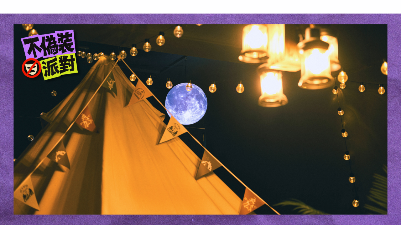 美酒與零食源源不絕,頭頂是串燈與月亮,身旁是草皮與大帳篷。