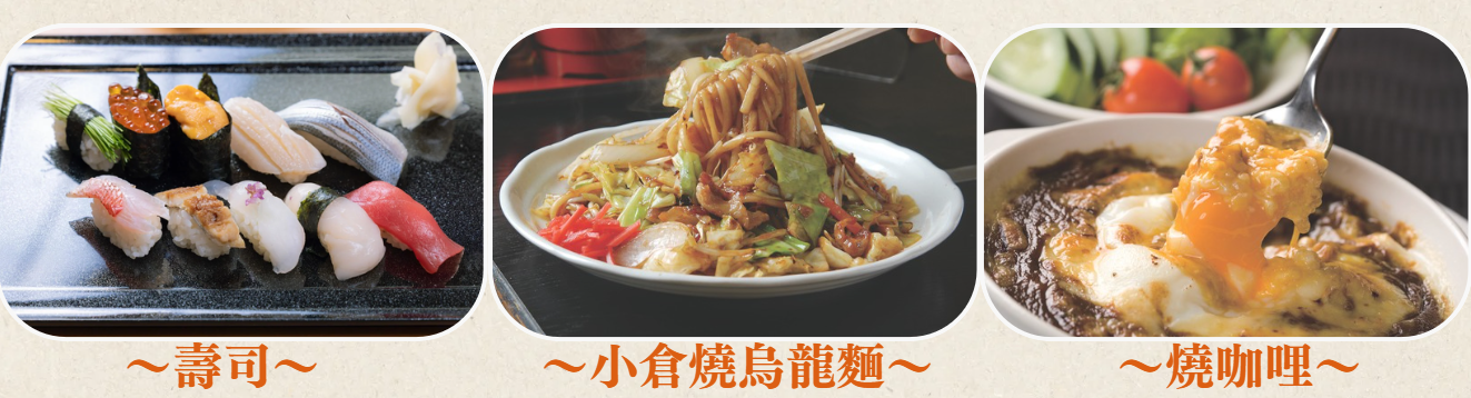 ◎ 小倉燒烏龍麵:粗而有嚼勁的烏龍麵搭配鐵板現炒,淋上特製醬汁,香氣十足,是北九州獨有的庶民美味。