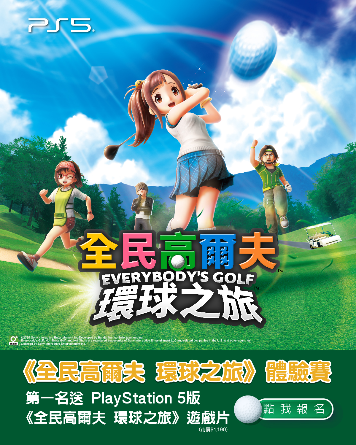體驗PlayStation5《全民高爾夫 環球之旅》,達檻送限量贈品及NOVA現金禮券100元(限量),積分最高送PlayStation5《全民高爾夫 環球之旅》遊戲。