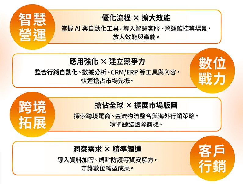 30+方案業者:智慧營運、數位戰力、跨境拓展、客戶行銷,4大關鍵力一次獲得