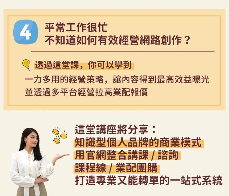 - 想要讓潛在邀課單位 / 合作方主動找到你,不純靠人脈給機會的人