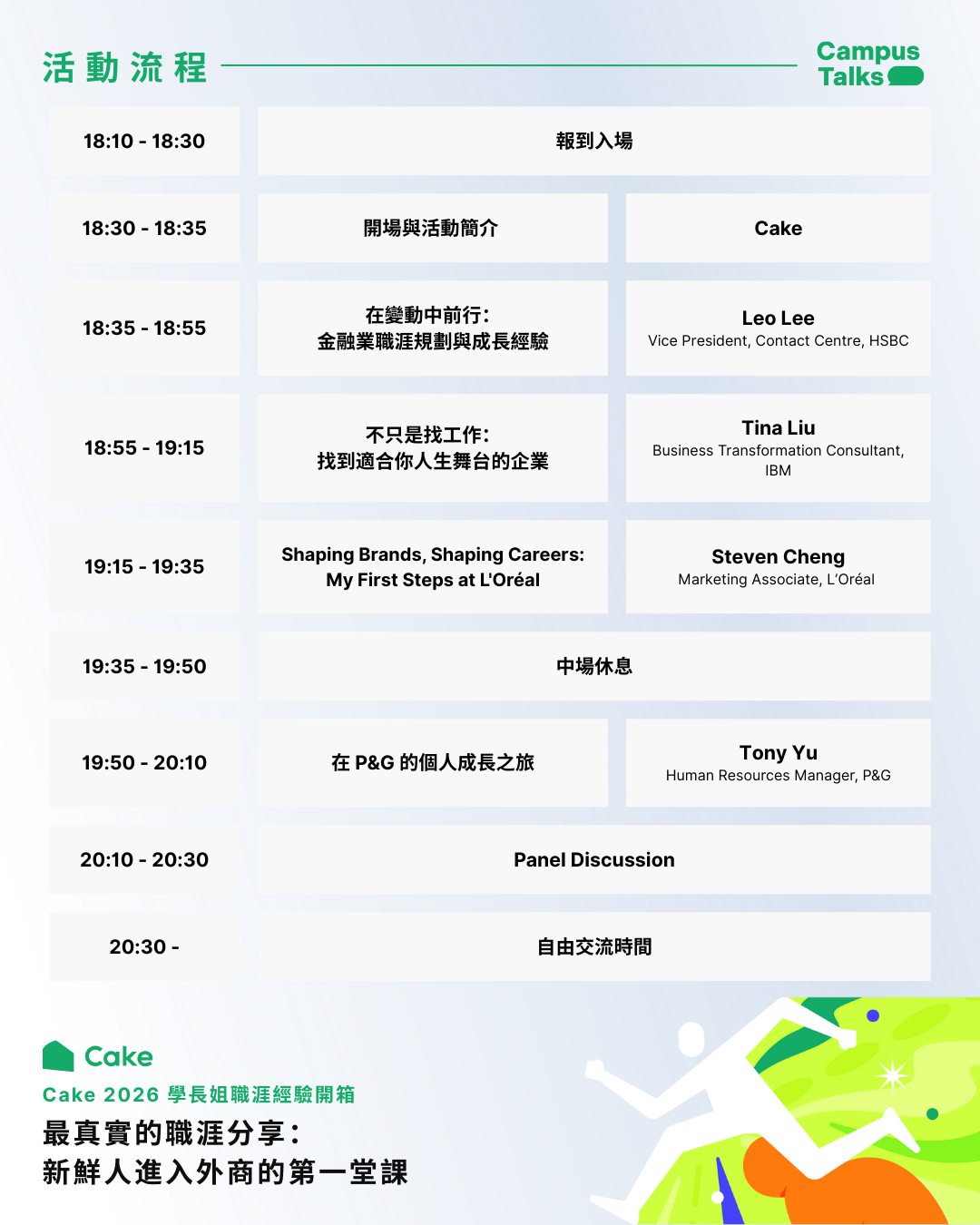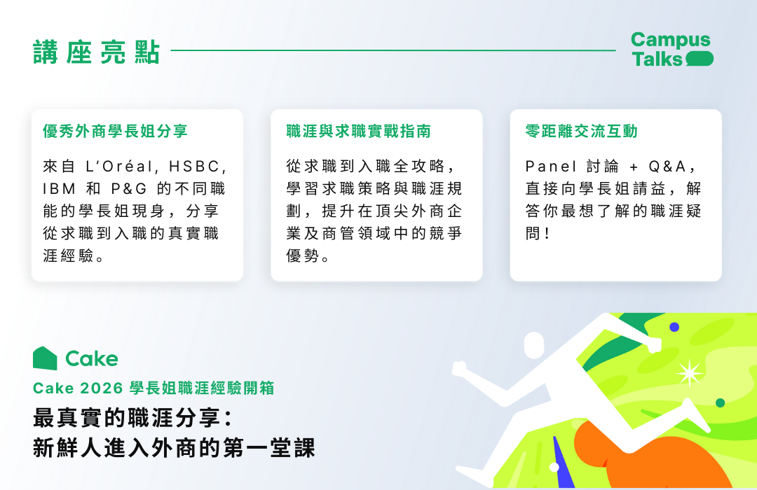 不要錯過 Cake 為年輕人才量身打造的 2026 學長姐職涯經驗開箱 Campus Talk!