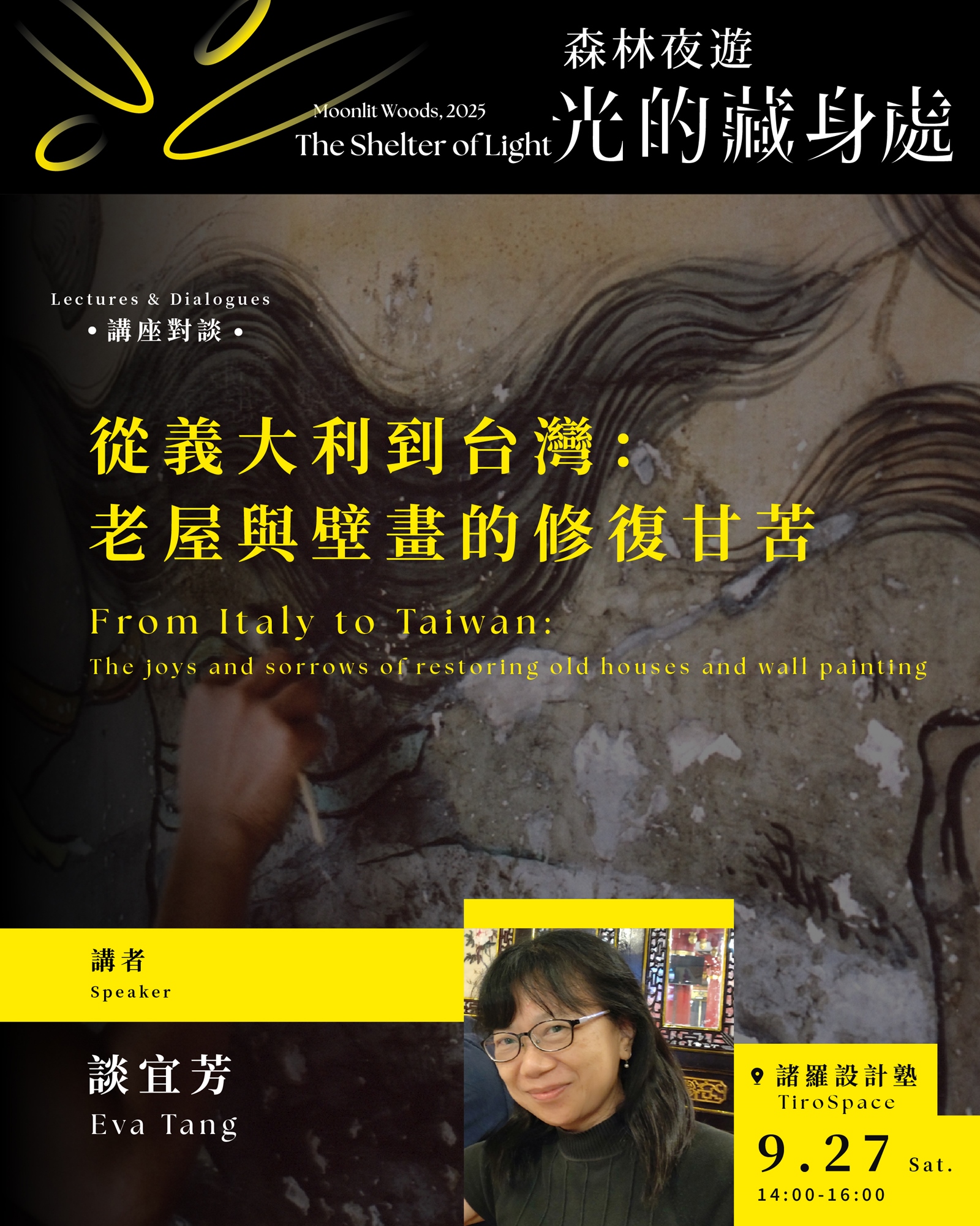 分享在義大利與臺灣跟老屋相處的經驗,生活與修護的甘苦過程。同時與慈龍寺林玉山的壁畫修復進行互動及老屋共學社群交流。