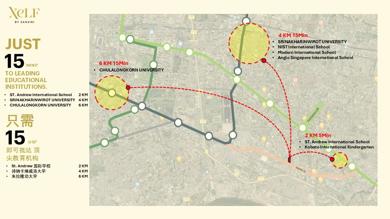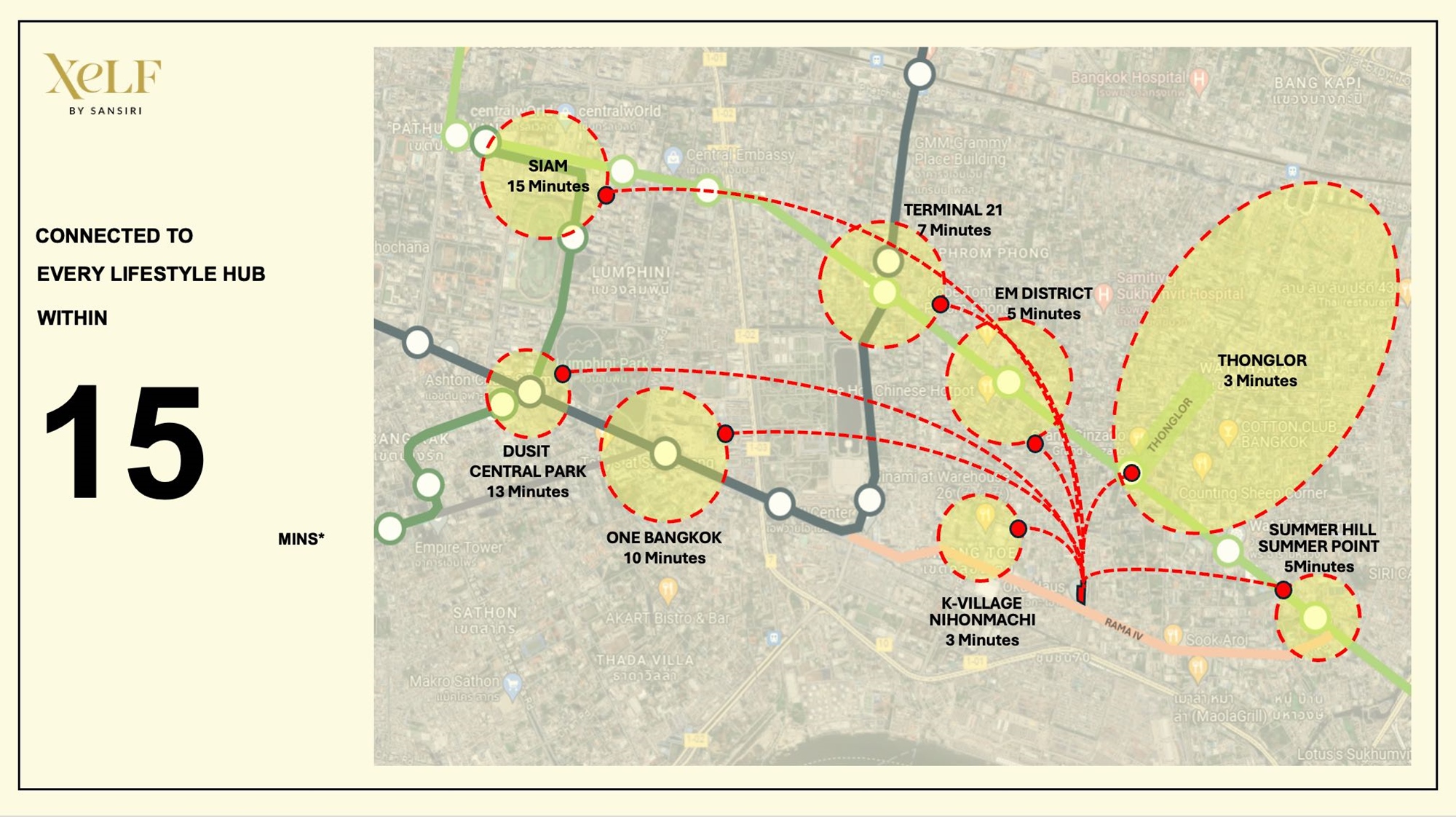 •15分鐘可抵達最新FYI、PARQ、詩麗吉國際會議展覽中心、One Bangkok、Dusit Central Park、Samyan Mirtown曼谷最新大型綜合體項目