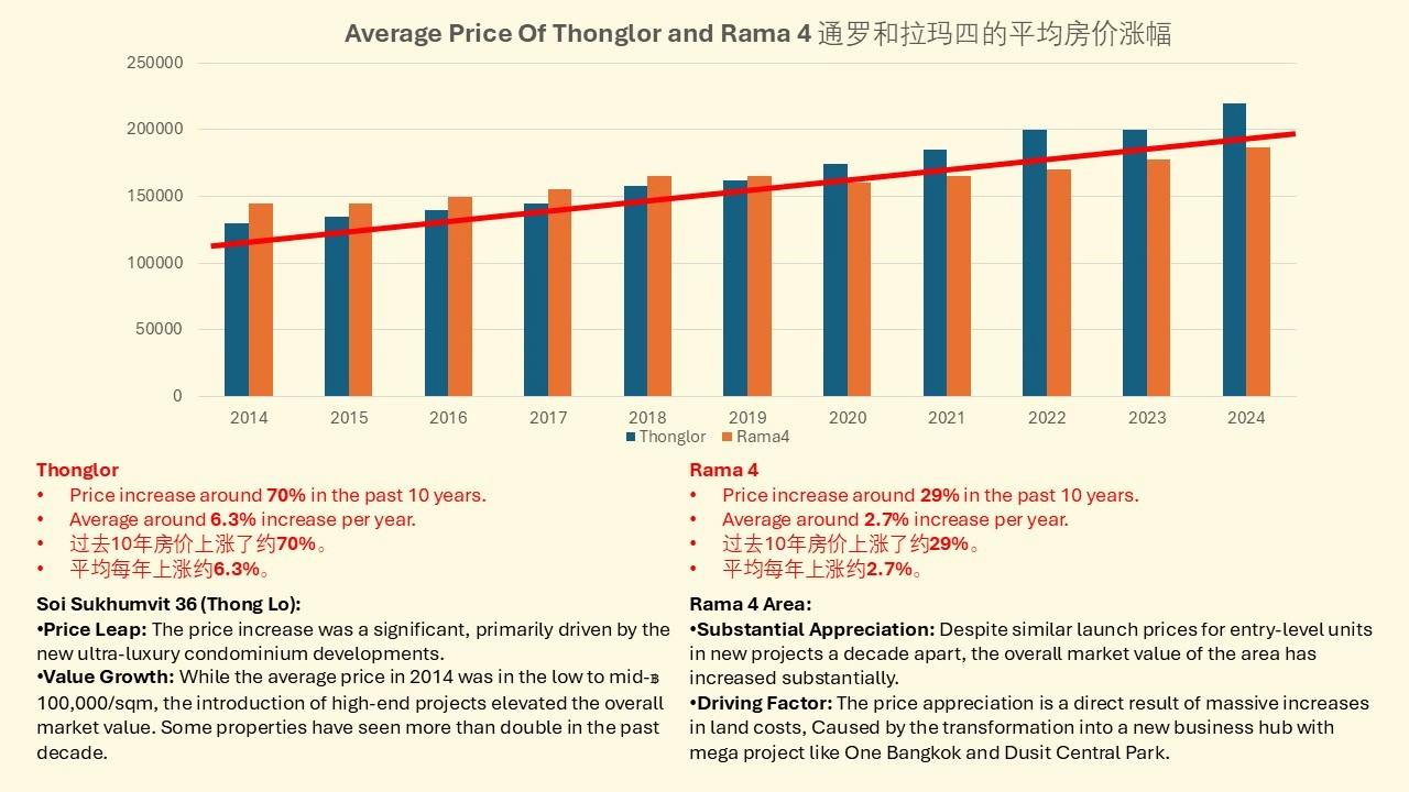 因為曼谷是台北5.7倍大,所以周邊蛋白區的土地還有相當多的地方可以做規劃,故主要位於蛋白區的建案是以泰國當地人住宅需求,外國人投資或自住主要還是以蛋黃區為主!才有其價值及稀有性,蛋黃區的土地相當稀有,故未來要出租或出售都相較於蛋白區更有競爭力!!!