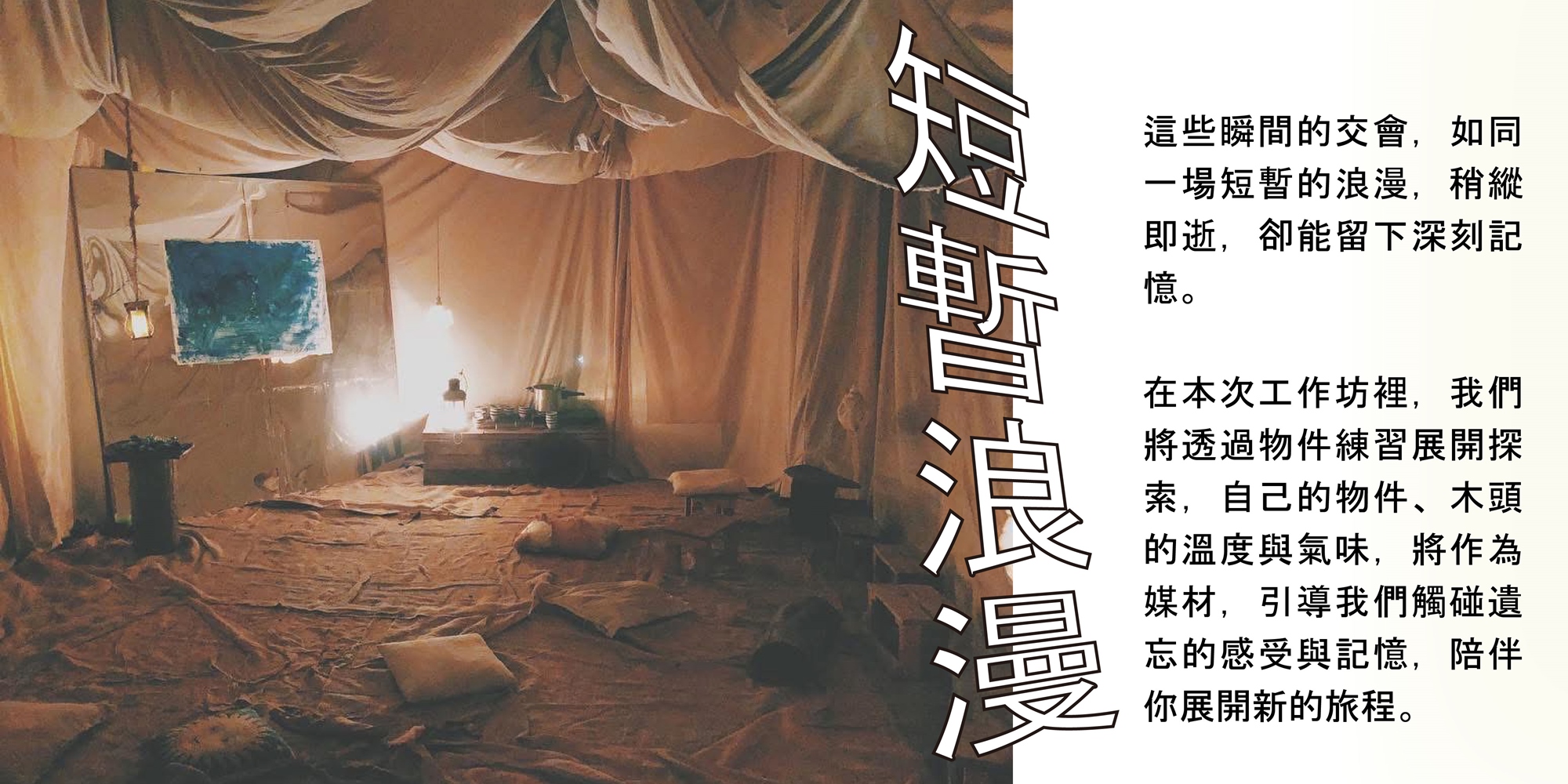 本次工作坊將透過物件練習展開探索,請準備1-2個在觸覺、嗅覺或聽覺上能帶給你特殊感受的物品,我們將以物件、木頭的溫度與氣味作為媒材,觸碰遺忘的感受與記憶,陪伴彼此展開新的旅程。
