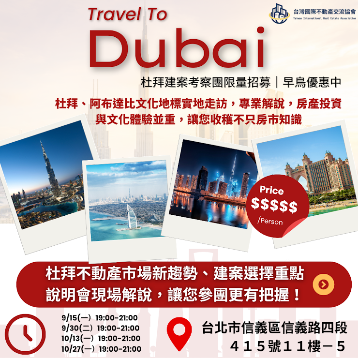 台灣國際不動產交流協會 誠摯邀請您參加杜拜建案考察團說明會!